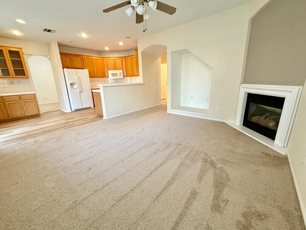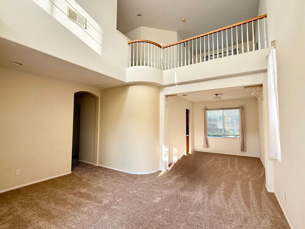 Beautiful Home for Lease in Dos Vientos – Harvest Moon Tract. Welcome to this spacious and well-maintained home located on a quiet cul-de-sac in the desirable Harvest Moon tract of Dos Vientos. This popular floor plan features a downstairs bedroom with a full bathroom, ideal for guests or multi-generational living. The home boasts an open and airy layout with soaring ceilings and abundant natural light. There is a dining room off the living room. The kitchen offers ample counter and cabinet space, a breakfast nook, and opens seamlessly to the inviting family room — great for entertaining or everyday living. Upstairs, you'll find a generous primary suite with an en-suite bathroom featuring dual sinks, a walk-in shower, and a separate soaking tub. There’s an additional bedroom, a versatile loft/bonus room, and a convenient upstairs laundry room. A built-in study area with desk in the hallway and make an extra remote work or homework area. Additional highlights include a 3-car garage, central A/C, new carpets and more. Residents have access to community amenities such as greenbelts, parks, playgrounds, and a resort-style pool and spa. Enjoy nearby hiking and biking trails and benefit from proximity to highly-rated schools. Dos Vientos Community Center is a few blocks away and offers Pickelball courts, sports fields, a recreation center and much more.
