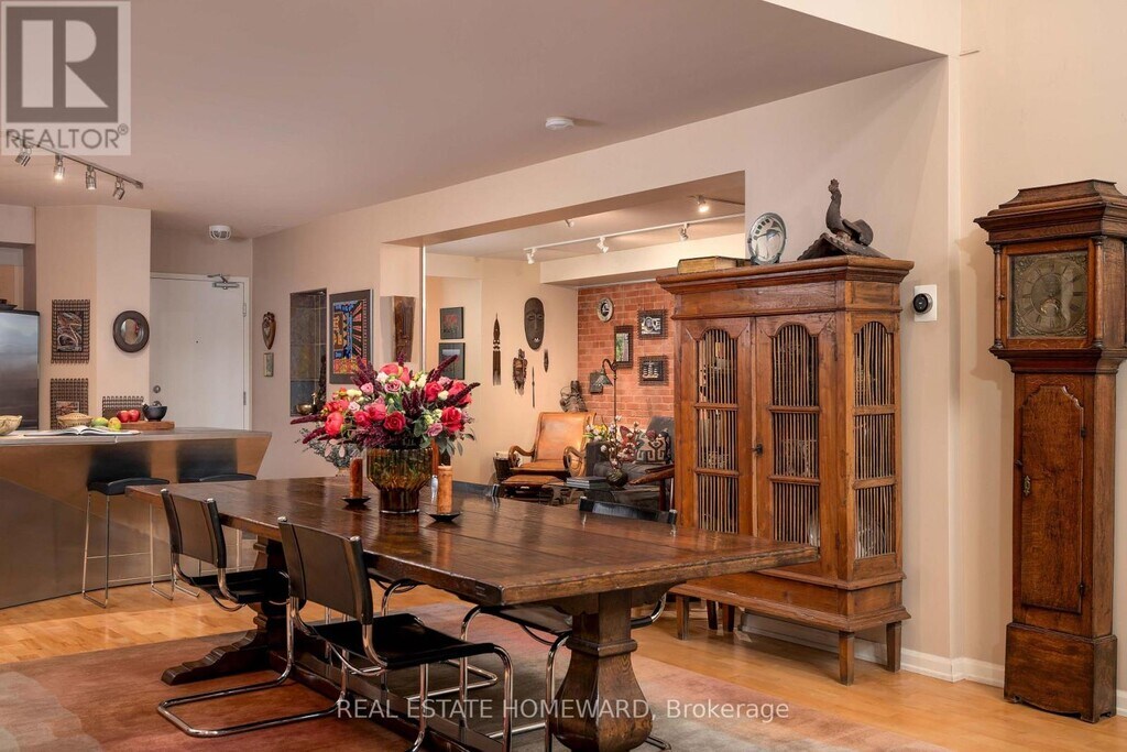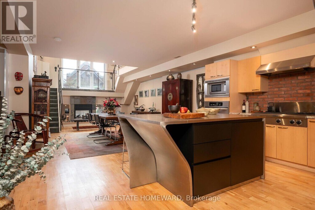 Unique church loft spanning over 2,250 square feet in desirable Riverdale neighbourhood. Once the Riverdale Presbyterian Church,this is remarkable 2004 Bob Mitchell conversion. Exposed brick walls and sculptural staircases are combined with warm hardwood floors and a two sided gas fireplace. Open and bright with floor-to-ceiling windows from the upper & lower levels yet also private. Enjoy your own private street level patio entrance and second level enclosed terrace. The main floor has a second bedroom with sliding doors and bath ideal for guests and additional entertaining room. The kitchen is outfitted with marble counters,a geometric island & breakfast bar which leads to dramatic dining area framed with 17 ft ceilings and exposed brick walls. A few steps down and you enter an inviting living area with access to additional below grade room ideal for wine tasting,workout space,or reading room. Upstairs is a expansive primary suite containing a 4- pc ensuite,walk-in closet,and open office. This is the largest suite in the building,and one of the most unique and appealing offerings you will find. Steps to incredible schools,parks,subway,shops and restaurants. (id:52069) ID#: 1643928