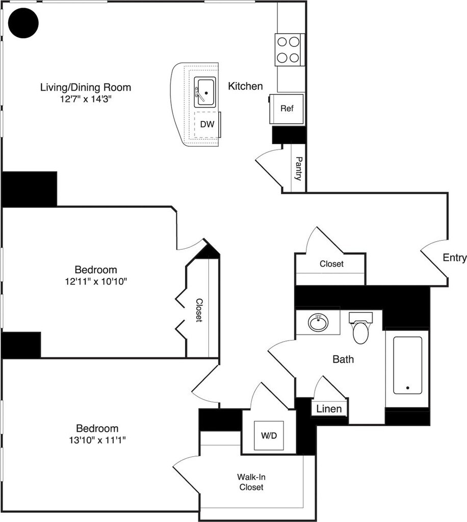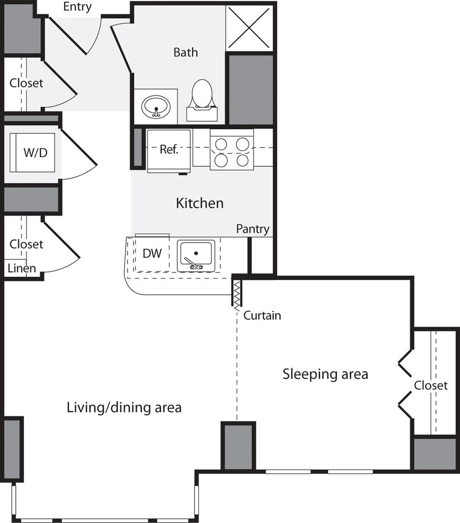 Studio B - Floorplan 1 Apartment Unit: 01-18MApartment Model: Studio B$3,570Studio, 1 Bath, 560 sq ftAvailable NowStudio BS
