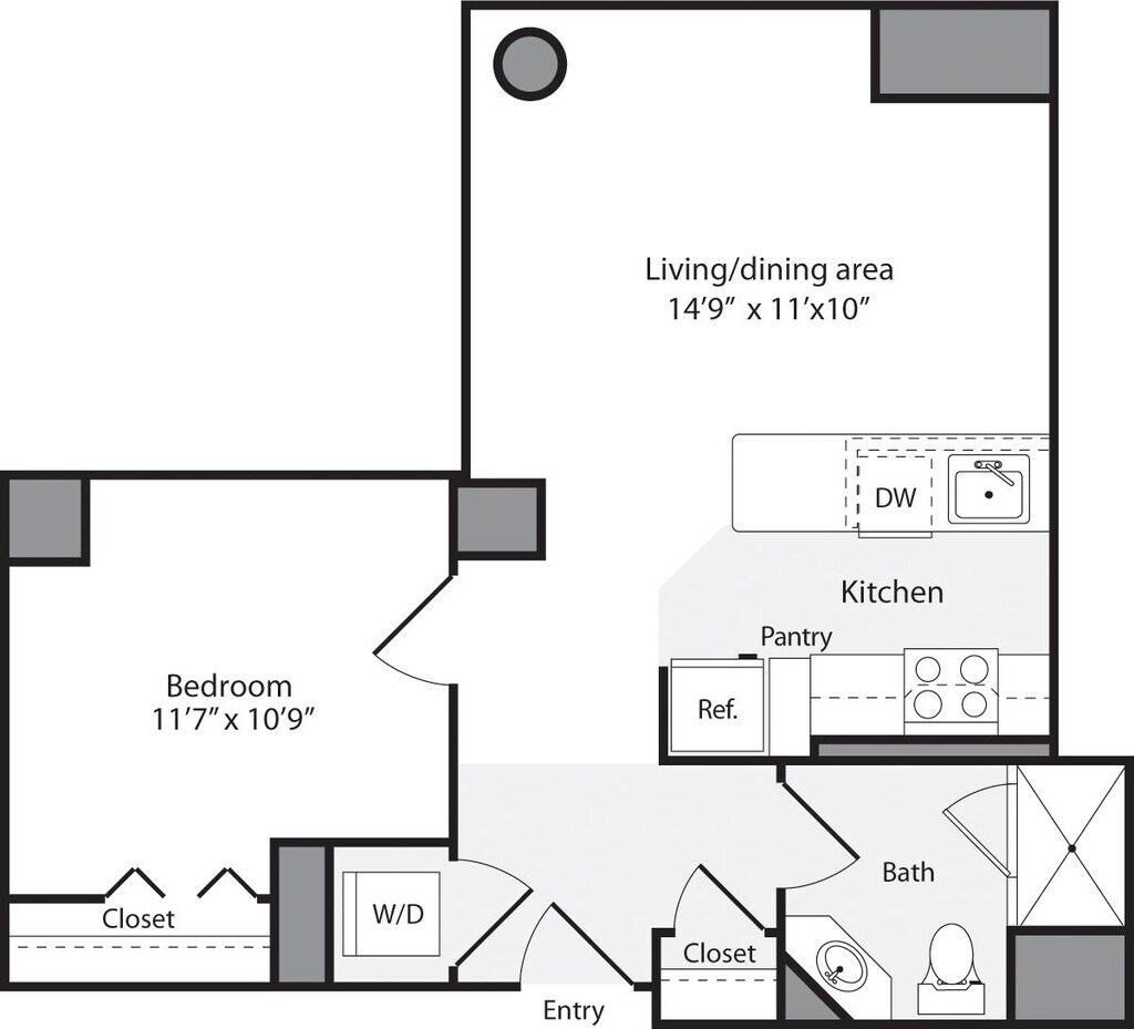 Studio, 1 Bath, 560 sq ftPlus FeesAvailable NowModel Gallery