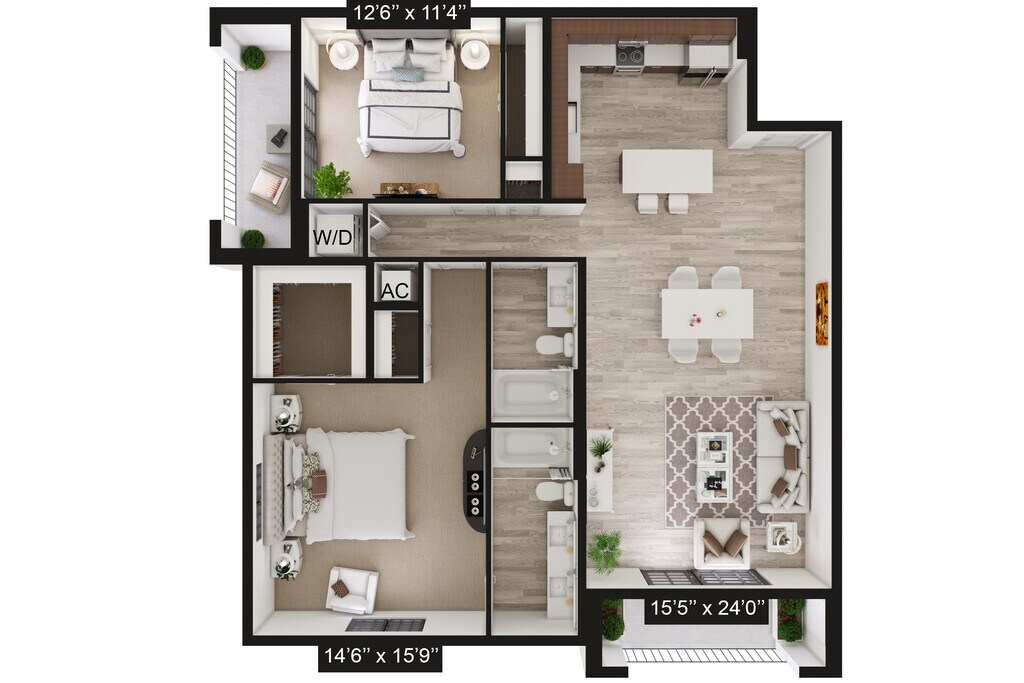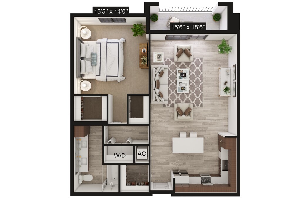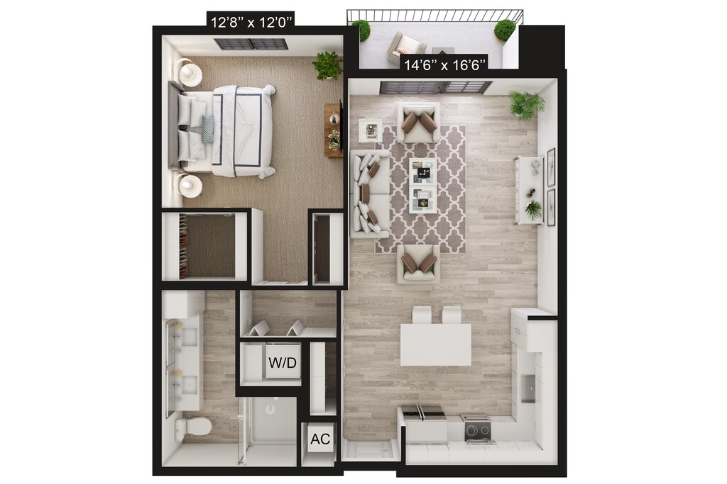 1 Bed, 1 Bath, 835-891 sq ftAvailable NowModel Gallery