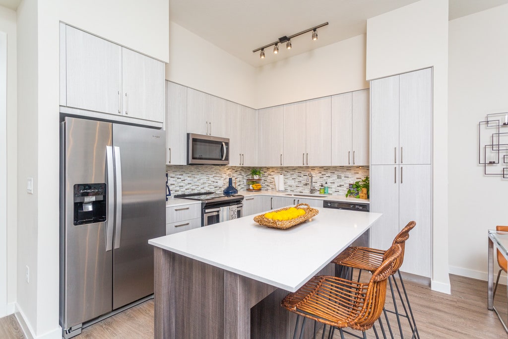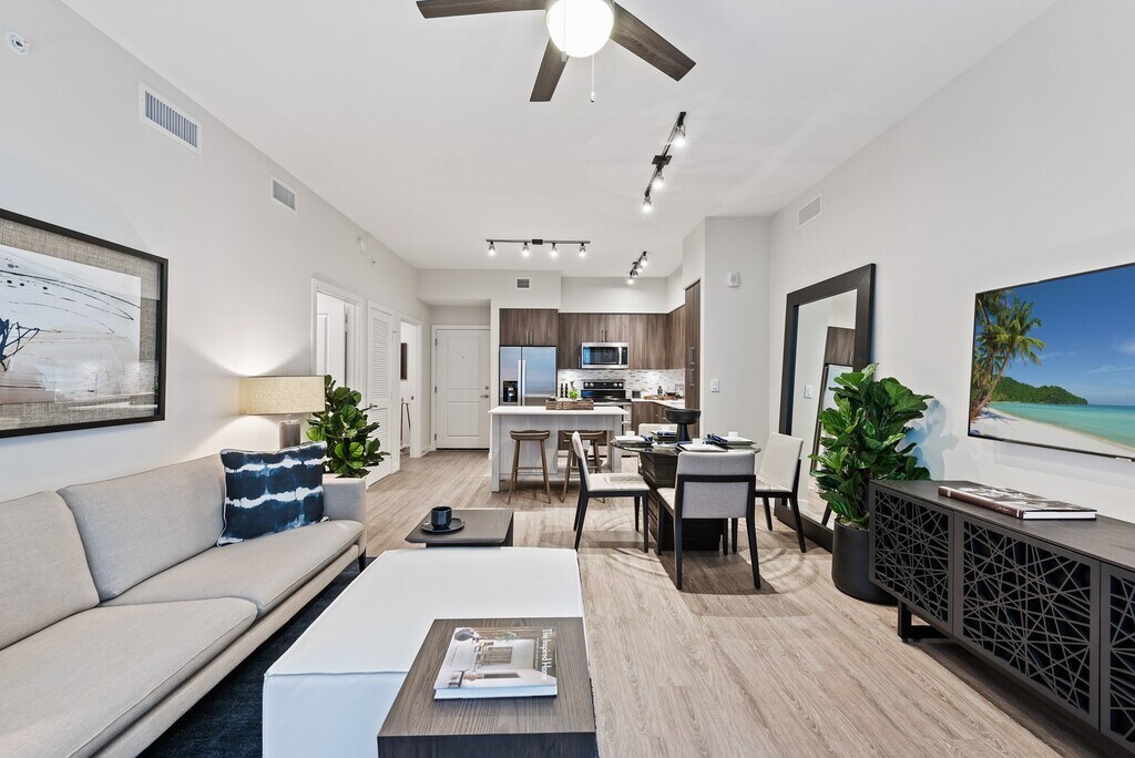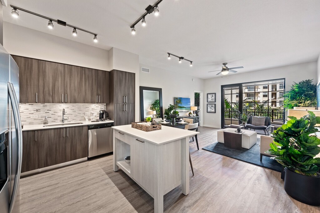 Located in the heart of Miami Lakes - right on Main Street - 6600 Main offers one and two bedroom apartment homes and a selection of 2, 3 and 4 bedroom townhomes designed with open concept layouts and chef inspired kitchens available in two premium finish packages. Upscale touches in the kitchens include stainless steel appliances, mixed stone backsplashes and quartz countertops. There is even a drawer for trash and recyclables built in just like those in custom homes. The full-size washer and dryer, incredible closets and covered parking make downtown Miami Lakes living even more desirable. If you are lucky to find a first floor unit, you will enjoy the towering 11 foot ceilings and direct access to Main Street restaurants and shops.