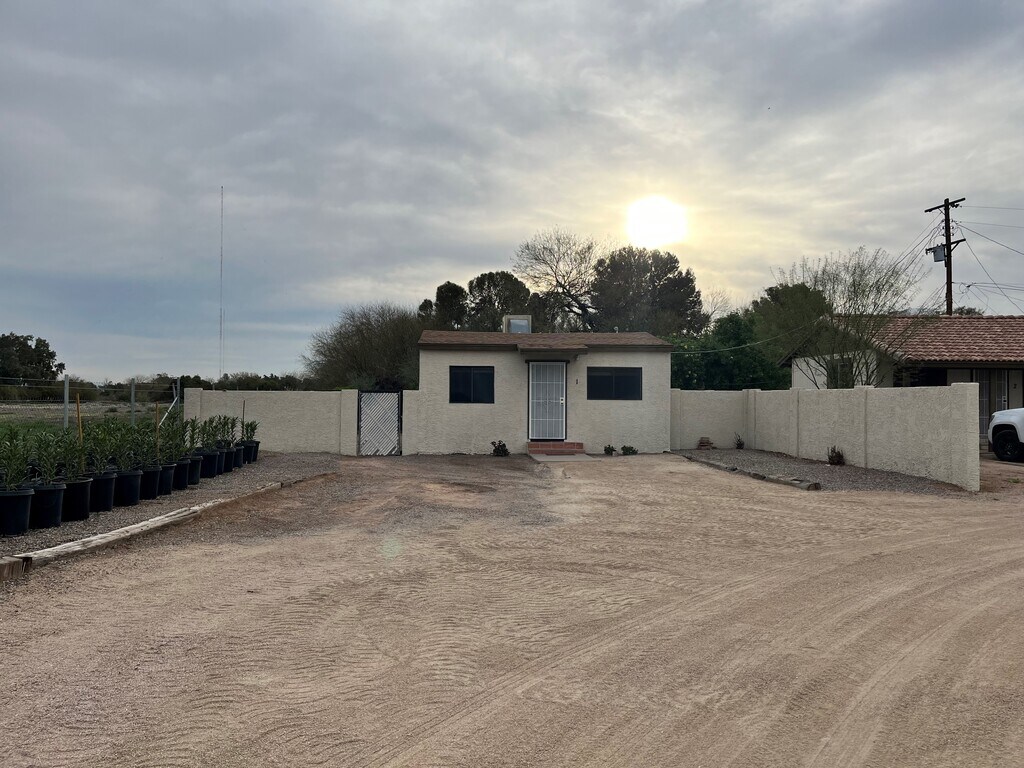 Casita #1 in an agricultural/rural setting, quiet and safe, gated residence. 500 square foot casita, single bedroom and bath with your own stackable washer/dryer, back yard and parking for two. This unique rental is situated inside a working plant nursery behind a security gate that is closed after business hours and weekends. Views of South Mountain, five miles from the airport and walking distance to The Farm dining experiences and two golf courses. $1,300/month including water. Electricity and wifi paid by tenant. First month rent, cleaning and security deposit required.
