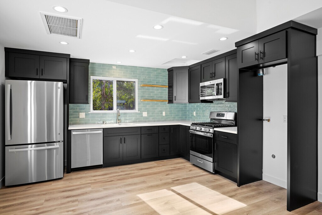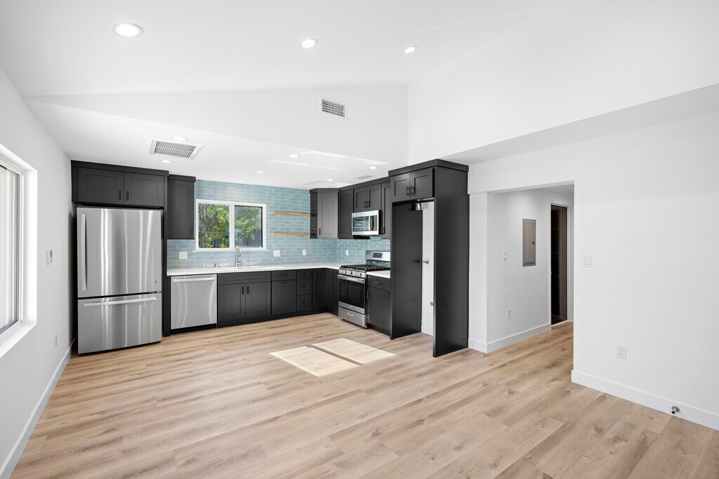 Up for lease is a newly constructed 2-bedroom, 1 bathroom ADU unit in the Heart of the San Fernando Valley. This stunning modern design boasts features like brand new stainless steel GE appliances, including a 5-burner gas range with griddle, bottom-freezer refrigerator, top control built-in dishwasher, over-the-range microwave and washer/dryer combo set all in a sleek and modern open kitchen with designer cabinetry. Enjoy the comfort of central heating and air conditioning with a state-of-the-art Samsung system, including a Samsung thermostat- perfect for maintaining your ideal climate year-round. Indulge in the beautifully appointed bathroom with a walk-in shower with a dual control rain and handheld shower heads. Bathroom is also complemented by an LED mirror that adds a touch of elegance to your daily routine. Both bedrooms are bright and airy and offer custom closet organizers for your belongings, designed to maximize space and style. The entire unit is illuminated with LED lighting, creating a bright and energy-efficient environment. Premium grade vinyl plank flooring throughout this thoughtfully designed flow of space. Looks and feels a lot bigger than actual size. An absolute must see private and secure location that is gated for your safety. The property is centrally located in the City of Van Nuys adjacent to many restaurants, major shopping centers, schools, public transportation, hospital and easy access to the 405 and 101 freeways for travel. Don't miss your chance to call it home. Contact us today to schedule a viewing! PLEASE NOTE: 2 units on the property and unit shares a common wall with the main house.