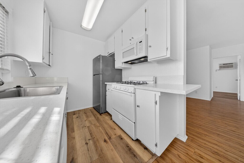 6736 Cleon Ave. APT 13 North Hollywood, CA 91608 - This Spacious 1 Bedroom 1 Bathroom has been Fully Renovated to Meet your Standards! A two story garden style building with water fountain courtyard, gated entrance, intercom system, gated parking ,surveillance cameras, laundry facility and a swimming pool located in prime North Hollywood minutes away from the famous Noho Art District with easy access to the 134 and 170 freeways. For more information or to schedule a viewing, please contact our Property Manager (818) 732-1946 or at [email address removed] KEY FEATURES Bedrooms: 1 Bed Bathrooms: 1 Bath Parking: 1 Space Lease Duration: 1 Year (See Details Below) Deposit: 1 month (OAC) Pets Policy: Cats & Dogs OK Laundry: Shared Property Type: Apartment Living room with new paint, wood floors,base molding, large window with vertical blinds, Air Conditioner and wall gas heater. Kitchen with linoleum flooring, nice white tile counter tops, large window with vertical blinds, microwave, gas stove, breakfast nook/bar, lots of cabinets and a new light fixture. Hallway with wood floors, new paint, and closet with mirrored doors that leads you to the bedroom and bathroom. Bedroom with new paint, wood floors, window with vertical blinds, ceiling fan with a light fixture and a large closet with sliding mirror doors. Bathroom with linoleum flooring, nice vanity, bathtub with a glass panel and all new accessories. This unit comes with 1 parking space in our gated parking* For additional Ben Leeds Property listings go to www.benleedsproperties.com or call our Leasing Agent 424-543-4181. Pet Policy: Cat and Dogs friendly – under 25 lbs. (weight at maturity); No aggressive breeds: Chows, Pit Bulls, Dobermans, Rottweilers, German Shepard, and a mix of aggressive breeds. Other Terms and Requirements: 1-year lease term; Security deposit is determined by your credit, typically 1-month rent; Online Application is preferred and can be processed faster than a paper application; $30 Application fee per person (18 years and older) can be paid with credit or debit card for online application or with money order and cashier check for paper application; No evictions; No foreclosures / bankruptcies in the last 5 years; Two (2) forms of current government issued ID: Driver’s License, Passport, SSN card, Military ID, Visa, etc; Proof of Income: last 3 months of check stub’s, or checking / saving account, or current W2. Renter’s insurance is required. Equal Housing Opportunity Provider *Pricing and availability is subject to change without notice* *Pictures not be of exact unit (Interior photos may vary slightly from unit to unit)* (RLNE2539969)