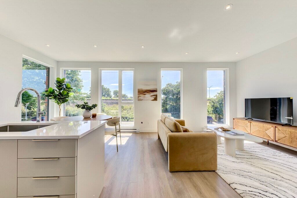 Welcome to your new home at 675 Rue Butler, in Pointe-St-Charles in Montreal, where modern living meets convenience and comfort. This newly built condo building features spacious 2-bedroom units, each thoughtfully designed with large windows that bathe the interiors in natural light. Enjoy the luxury of a spacious patio or private backyard—perfect for outdoor living in the heart of the city. Every unit comes equipped with brand new, high-quality appliances, ensuring a move-in ready experience. Whether you're hosting friends or relaxing after a busy day, the open-concept living spaces offer both style and functionality. Located in a vibrant and accessible neighborhood, this property offers unbeatable proximity to key amenities: Subway: A short 7-minute walk to Lasalle metro station (Green Line) Grocery Stores: Less than a 5-minute walk to Maxi Grocery Store and Canadian Tire Restaurants & Cafes: Explore a variety of dining options just steps away on Rue Wellington Parks: A 5-minute walk to the beautiful local Park Public Transit: Easy access to bus routes connecting you to all parts of the city Perfectly situated to offer the best of both worlds—urban living with the tranquility of a brand new, well-designed building—this condo is an exceptional choice for those looking for modern amenities in an unbeatable location.