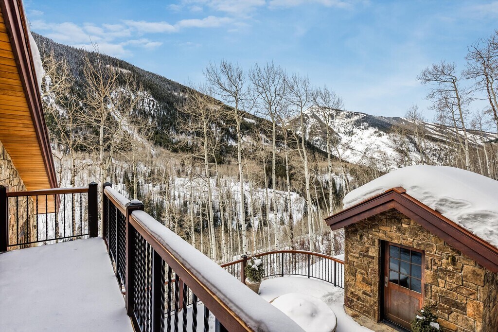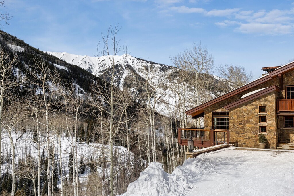 Located 10 minutes from town and surrounded by the Elk Mountains, 6770 Castle Creek Road is a sanctuary offering access to all that Aspen has to offer. Perched on the hillside overlooking the Castle Creek Valley, this chalet-style home brings in all of the surrounding scenery including dramatic views of South Highland Bowl, Five Fingers and the surrounding mountains. Walk-out patios grace large portions of the house including a main-level wrap-around that leads to an outdoor dining area and a wooden large deck complete with an encased Japanese soaking tub. The main level includes a beautiful central stone hearth complete with wood-burning fireplace that anchors the living and dining rooms as well as the custom gourmet kitchen with Wolf, Bosch and Subzero appliances. A separate media room and guest suite are adjacent to a stone and glass wine room and abundant pantry space. Completing the main level is the wellness studio, complete with an infrared sauna. Just off the main living space is a converted heated shed equipped to house a private office space or workout studio. The upper level is home to the large, private master suite that has its own gas fireplace and private patio. Adjacent to this is a large den/office space that overlooks the living room and includes a cozy loft space furnished with two beds that is beloved by any youngster. The walkout from this zone leads to a separate hillside patio perfect for sunbathing and drinking in the property's views. The lower level includes a wonderful, private en-suite guest room. Every interior space is appointed with top-level finishes. The bathrooms are light and bright with exquisite honed white calacatta marble throughout. All of the glass doors in the house are Starphire and of extraordinary quality. The exterior features copper windows and contemporary stone and the yard is wild and beautiful year-round, requiring no maintenance. The attached 2-car garage has incredible storage space and ready to house any of your gear and offroad toys that provide summer or winter access into the backcountry, most notably access to skiing on Aspen Mountain via Little Annie's Rd that avoids the gondola line on even the deepest powder days. Extensive top-of-the-line home systems afford the luxurious comforts of in-town living. The home is solar powered with significant battery storage. A whole-home R-O water system includes over 500 gallons of backup water storage and a high-pressure pump to ensure robust flow from all areas of the home. The property is also wired for fiber-optic broadband internet ensuring high-speed connectivity. Several systems have been updated recently.