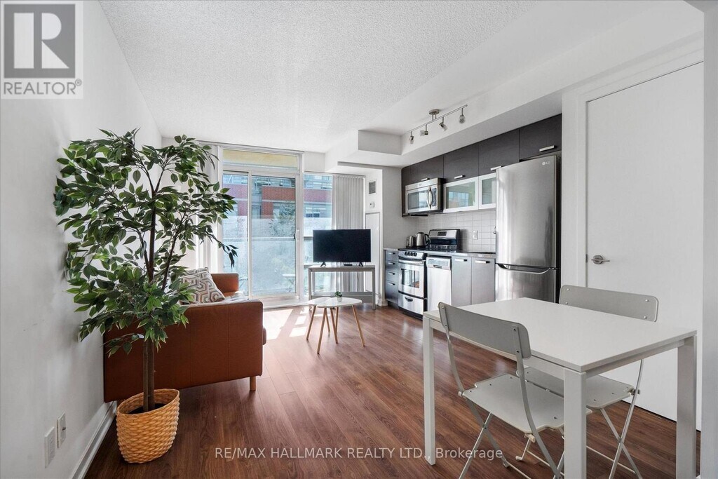 Luxurious 1+Den Condo in the Heart of Queen West Village! Welcome to this bright and spacious1+1 condo perfectly situated in one of Torontos most vibrant and iconic neighbourhoods. This beautifully designed unit features tall ceilings,luxurious flooring,and floor to ceiling windows that fill the space with natural light and offer panoramic city views. The modern open concept kitchen is equipped with granite countertops,sleek stainless steel appliances,and ample storage,ideal for both everyday living and entertaining. Step out onto your private balcony and take in the urban skyline. The den,complete with French doors provides the flexibility to serve as a second bedroom,home office,or creative space. Located just steps from Queen Street Wests best restaurants,trendy cafes,boutique shops,cultural attractions,parks,and TTC streetcar service,this condo offers unmatched convenience and lifestyle. Dontmiss this opportunity to live in one of Torontos most desirable downtown communities! (id:52069) ID#: 1414641