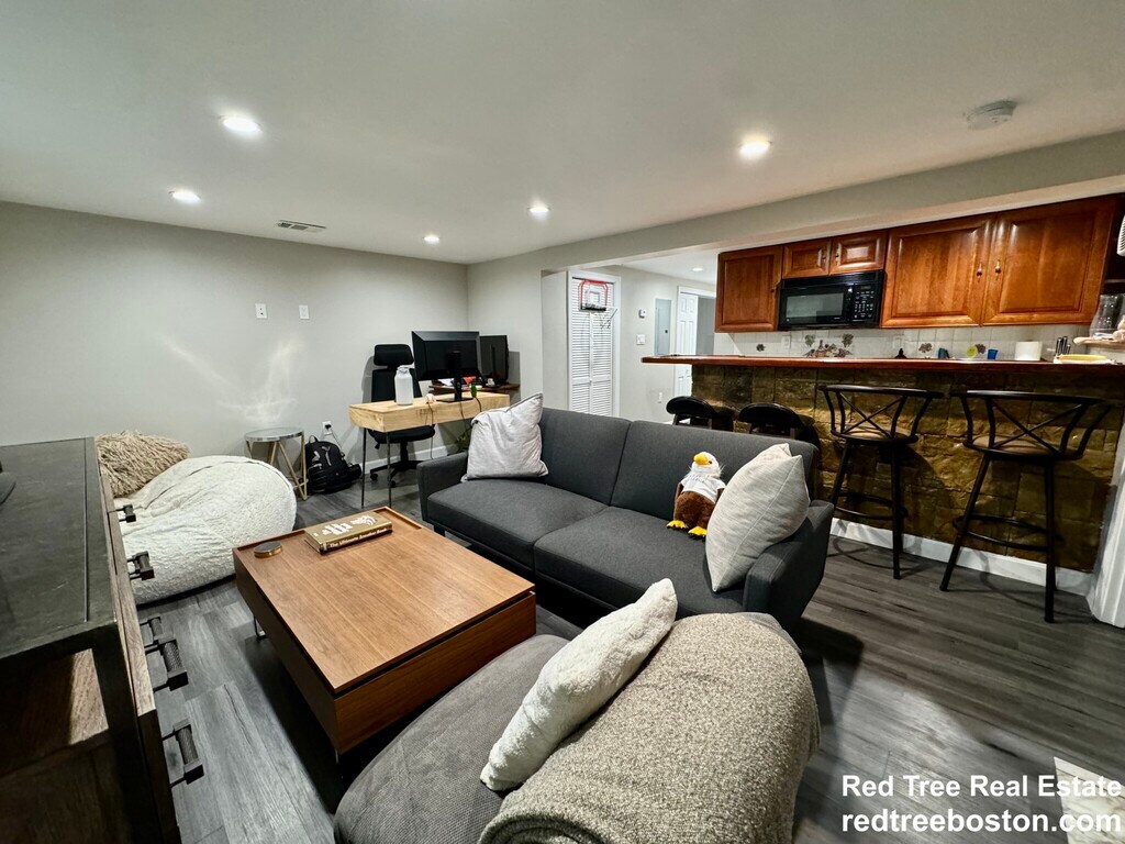 Incredible duplex apartment for rent near Boston College. Unit features full kitchen, breakfast nook, living room, bedrooms, two full baths, and kitchenette in the finished basement. Internet connection and cable included. 2 parking spaces available for rent. Access to yard. Air conditioning and fireplaces.