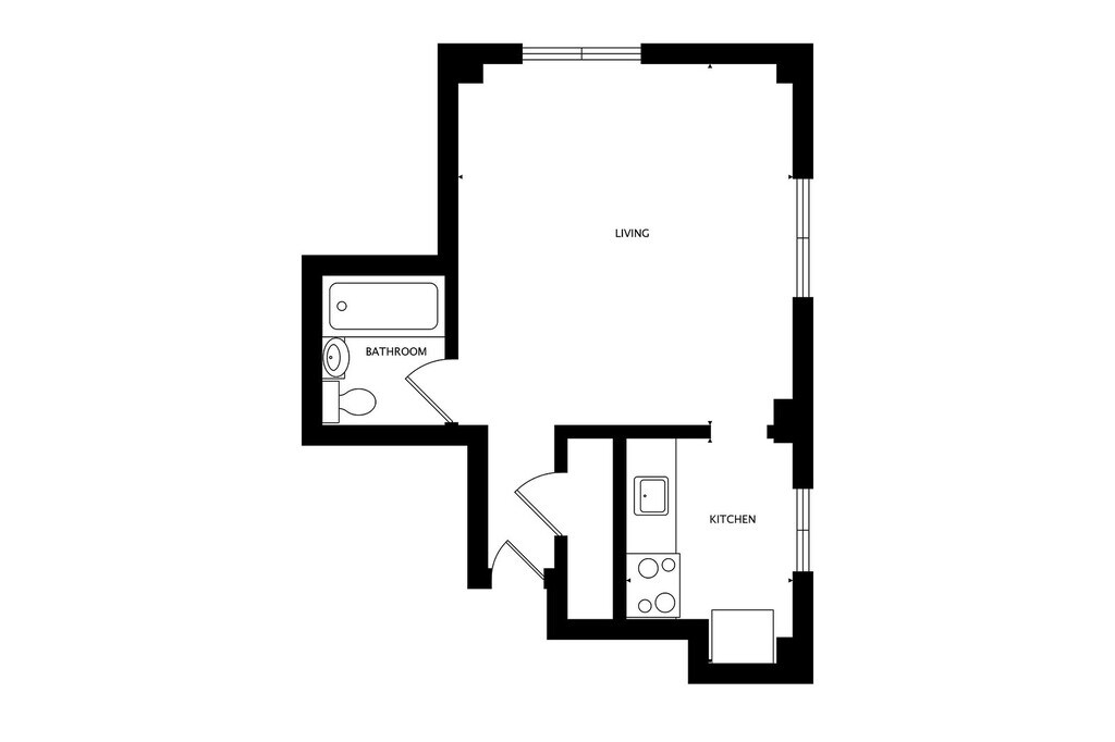 Efficiency Studio - Floorplan 5 Studio 1 Bath