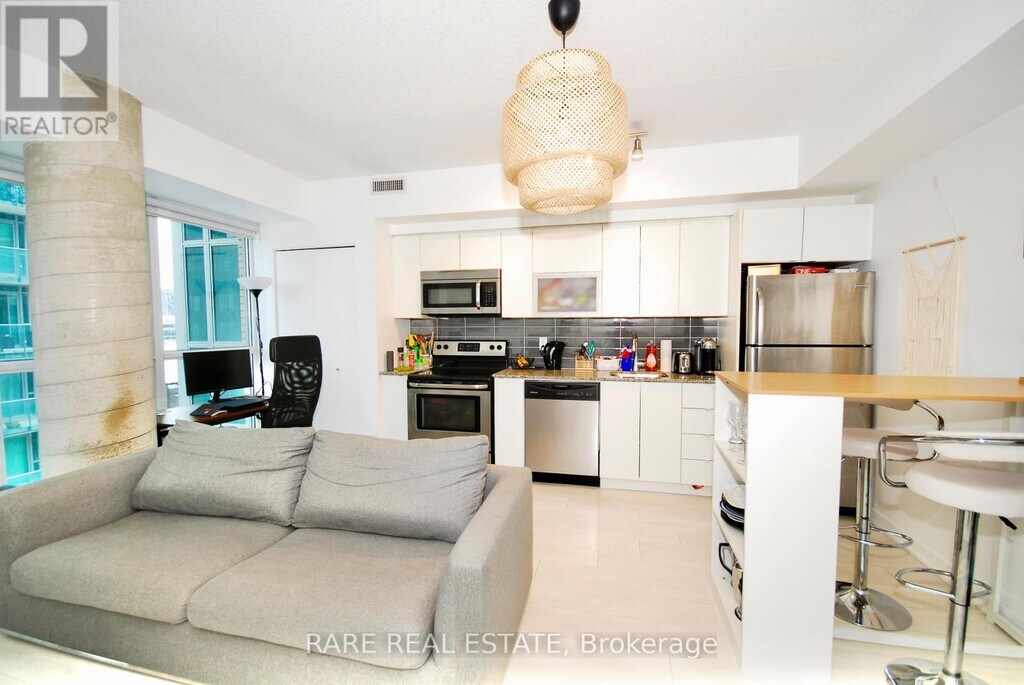 Welcome to Liberty On The Park a fantastic one-bedroom residence that offers more space than the typical sub-500 sqft condo. With 619 sqft of well-designed living,this suite combines style and function seamlessly. Enjoy stainless steel appliances,a classic subway tile backsplash,plentiful cabinetry,and sleek modern grey laminate throughout. Unlike many high-rise towers,this boutique building offers an intimate,community-oriented atmosphere with fewer units,lower and more stable maintenance fees,and residents who truly care about keeping the property well-managed. Its the perfect balance of privacy and connection. Situated directly on Liberty Park,you'll love the convenience and walkability of this location steps to trendy restaurants,cozy cafes,shopping,fitness studios,and waterfront trails. With parks,patios,and Lake Ontario all within easy reach,outdoor living and urban convenience blend beautifully here. Don't miss this opportunity to live in a well-run building that feels like home while enjoying all the vibrancy of Liberty Village right at your doorstep. (id:52069) ID#: 1980337