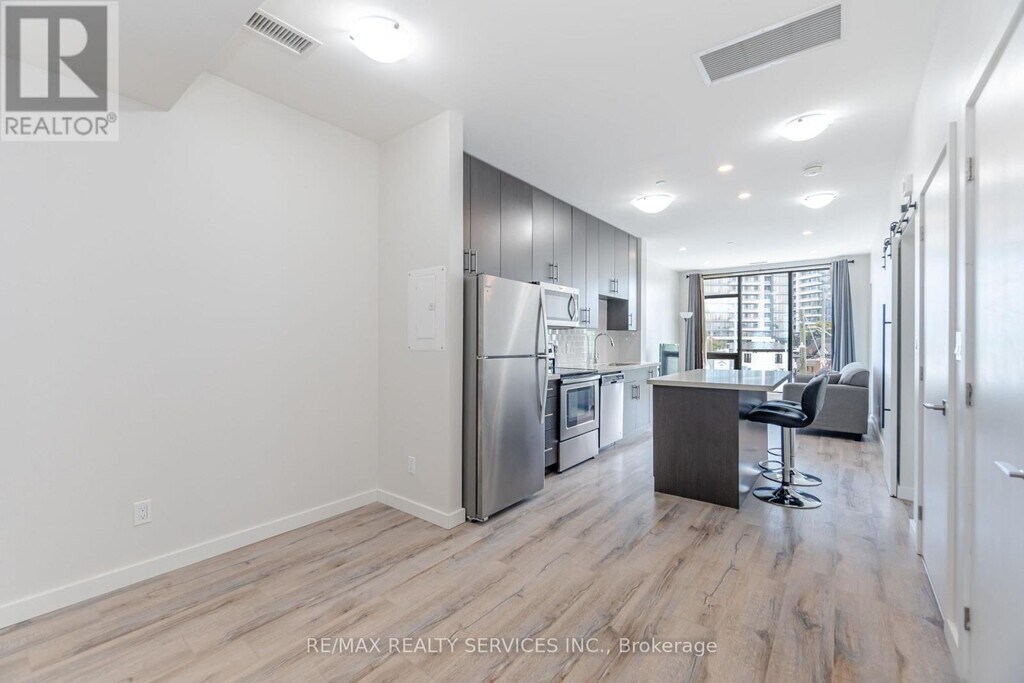 Discover modern urban living in this well-appointed 1 bed+1Den,1-bath unit nestled in Kitcheners Midtown Lofts. The contemporary layout boasts floor-to-ceiling windows,quartz counters,hardwood floors,stainless steel appliances,and ensuite laundry in a sleek island kitchen. Enjoy access to premium building amenities,including a fitness center,lounge,BBQ terrace,and bike storage,along with underground parking. Ideally situated next to the ION light rail,with walking access to Waterloos Tech District,Google,Uptown,and major transit routes this home blends convenience with style in a perfect urban setting.** (id:52069) ID#: 1985915