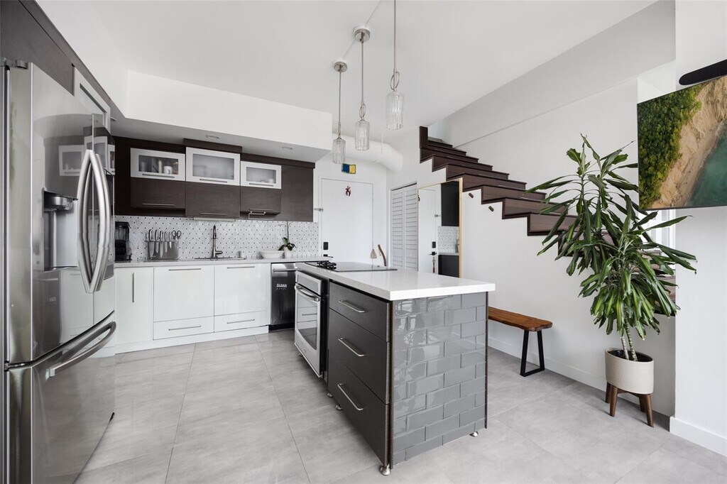 Rare Enclosed Loft Penthouse — Neo Vertika, Brickell Riverfront. Renovated 2BR + den, 2BA enclosed loft—one of few in Brickell—on private, flood-safe street 2 blocks to Brickell City Center. 2-story plan with 10’ ceilings, floor-to-ceiling windows, and hurricane-impact sliders to oversized~450 sf balcony, capturing city views and active Miami River scene—your own little Venice. Smart home, keyless entry, motorized blinds (blackout in primary), stair w/~58 sf extra storage, in-unit W/D. Kitchen: quartz, marble backsplash, garbage disposal. Primary: three closets +den. Upstairs bath with vanity; spa-grade shower (rainfall + handhelds). Guest room w/ Murphy bed. Two parking(garage + valet), EV charging. Resort-style amenities.