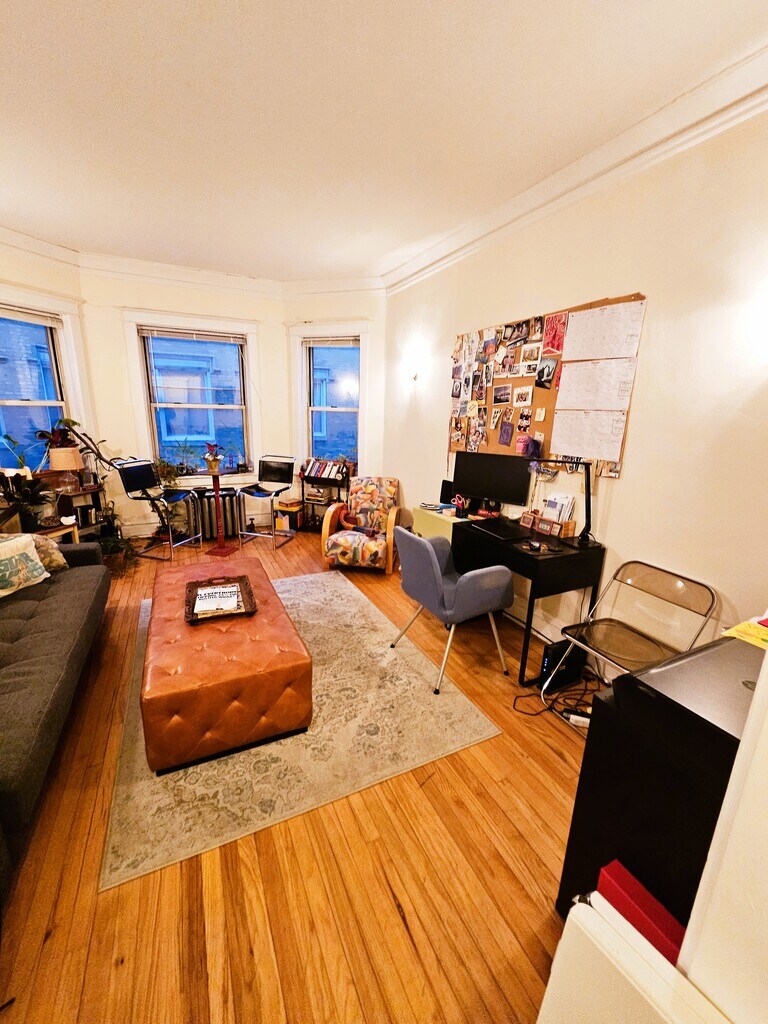 Aug 1- LOVELY 1 bed FREE HEAT (radiator) & WATER! Refinished Hardwood Floors+10 foot ceilings. BAY Window in living room. EAT-in KITCHEN has LOTS of cabinets and GREAT Eat-in area including a separate cabinet to create a coffee bar/cocktail station - use your imagination! Cat ok - NO FEE. GOOD CREDIT IS REQUIRED. Must be able to prove income. 1 Year Minimum. Tenant pays electric and cooking gas. Tenant brings and their own window AC.