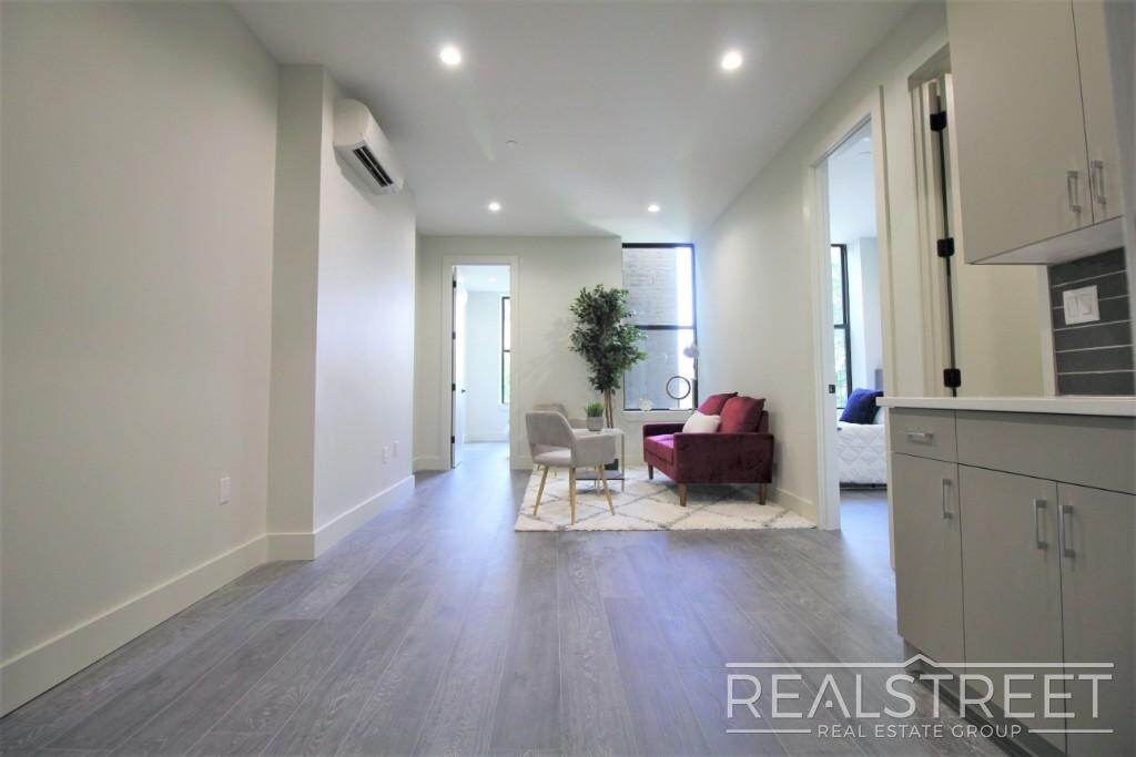 Welcome to 697 Dekalb Ave, a Brand Apt with modern design & finishes. Super Spacious layout with very large rooms and flooded with sunlight through the SOUTH facing windows! Featuring sleek a gray & white kitchen equipped with stainless steel appliances and White stone countertops. Wide plank gray floors, tall ceilings and an open concept living room & kitchen provide a bright & airy feel. Other features include Central Air Conditioning units in every room and a Sleek Modern bathroom with waterfall shower head. The queen size bedroom has a full closet and large South Facing double-pane windows flooding the unit with sunlight. Features include: Washer/Dryer on site Shared Garden Central Air Video Intercom Pets on approval Guarantors allowed
