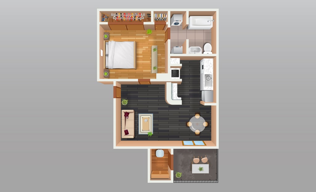 Apartment Model: 1x1 DeluxeFrom $9351 Bedroom, 1 Bath, 468 sq ftAvailable Now![]()