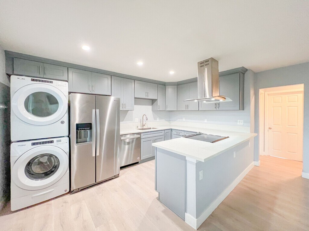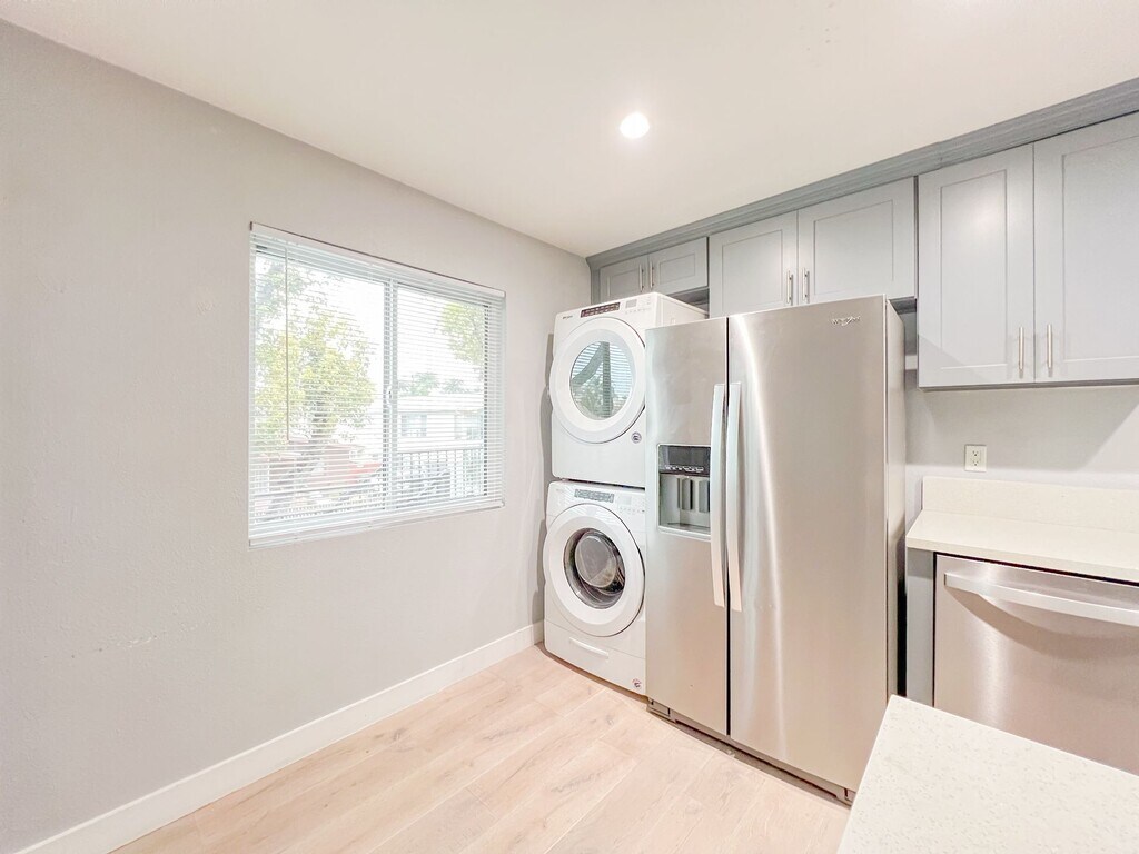 We are proudly offering for rent this beautifully remodeled 2 bedroom 1 bath apartment in the city of Long Beach. The apartment is approximately 800 square feet with vinyl plank floors, two tone paint, gorgeous new kitchen and bath cabinetry, vinyl windows, quartz kitchen & bath counter-tops, a stunning tile shower wall, bathroom tile flooring, stainless steel kitchen appliances (stove, dishwasher, refrigerator), ceiling fans, blinds and in unit laundry hookups with machines. The apartment is very close to Downtown Long Beach. Hurry, this unit won't last long. The apartment requires renters insurance. Onsite storage room available to lease for an additional $20/mon