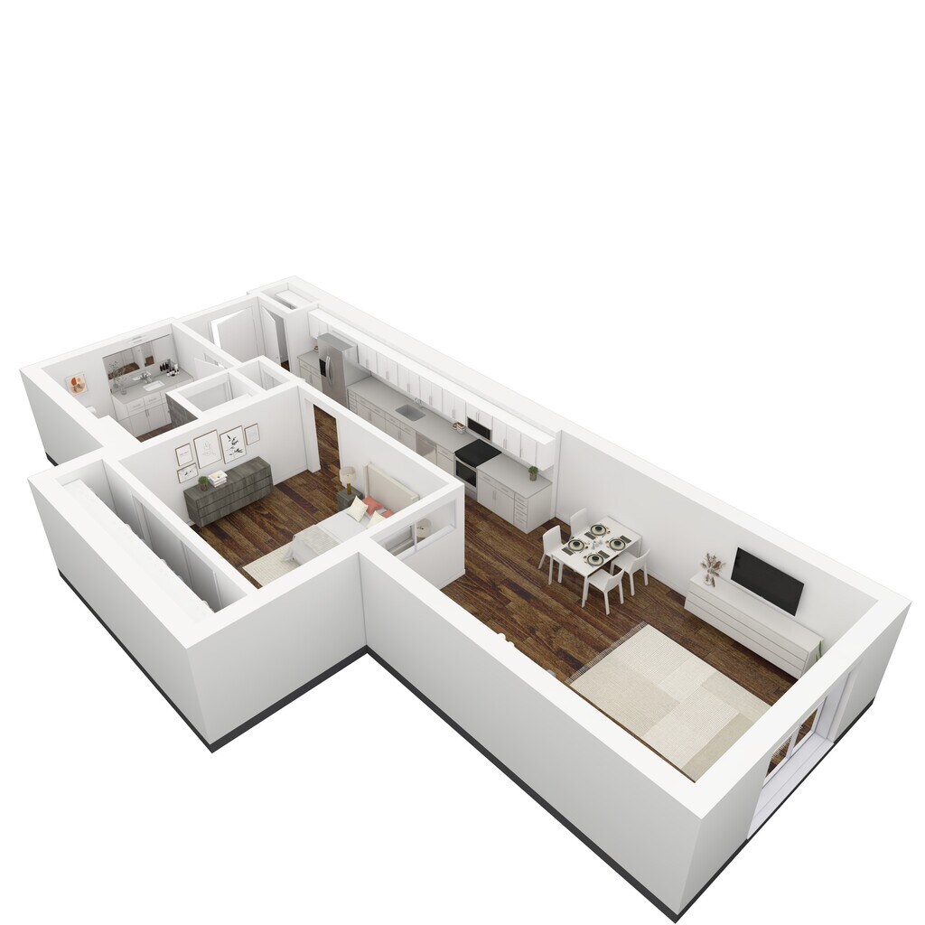 Stein - Floorplan 4 Apartment Unit: 6th and Main-440Apartment Model: SteinFrom $1,7191 Bedroom, 1 Bath, 729 sq ftAvailable NowRegis