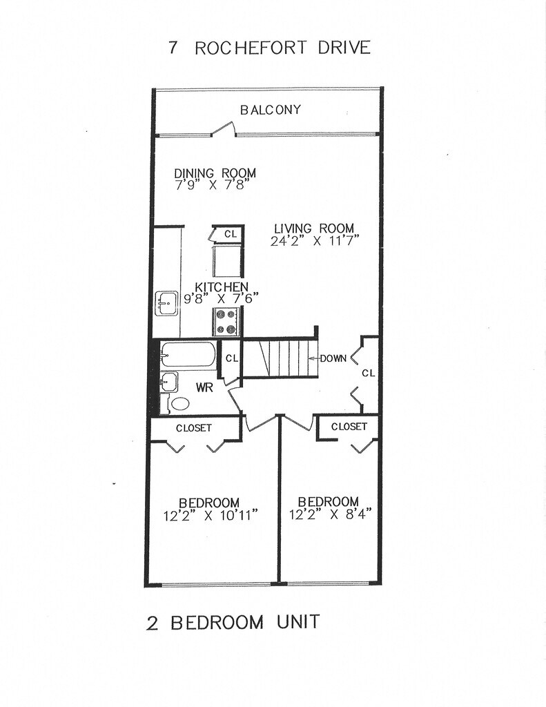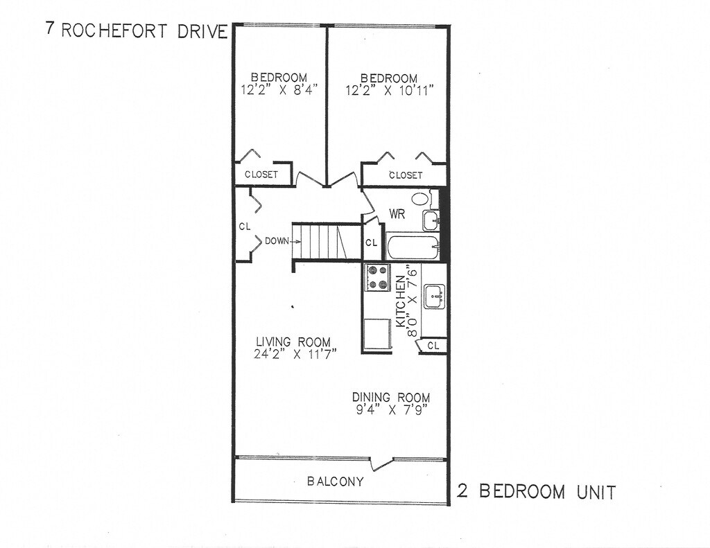 2 bedroom with stairs, one bathroom & balcony - Floorplan 7 ![]()