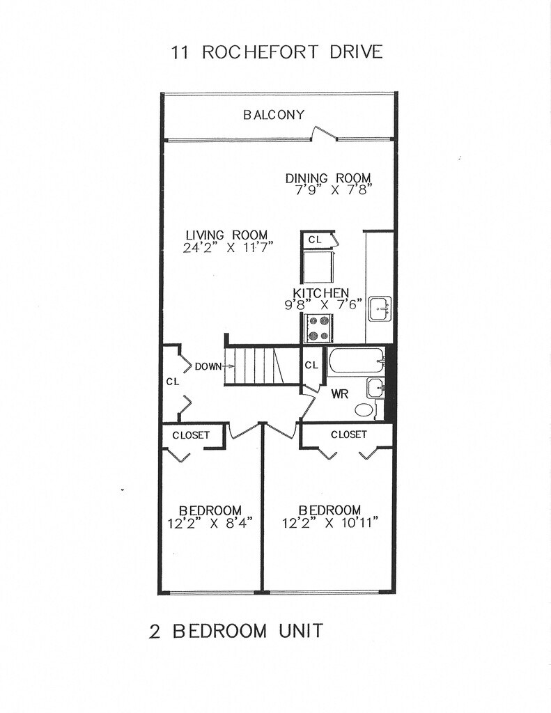 2 bedroom with stairs, one bathroom & balcony - Floorplan 4 ![]()