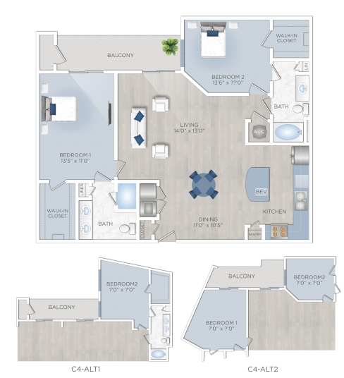 7-Seventy offers 1 to 3 Bedroom apartments starting from $1,219 and having 631–1,568 sq ft. Here is the current pricing and availability: