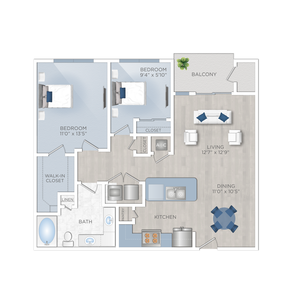 1 Bed, 1 Bath, 856 sq ftAvailable NowModel Gallery