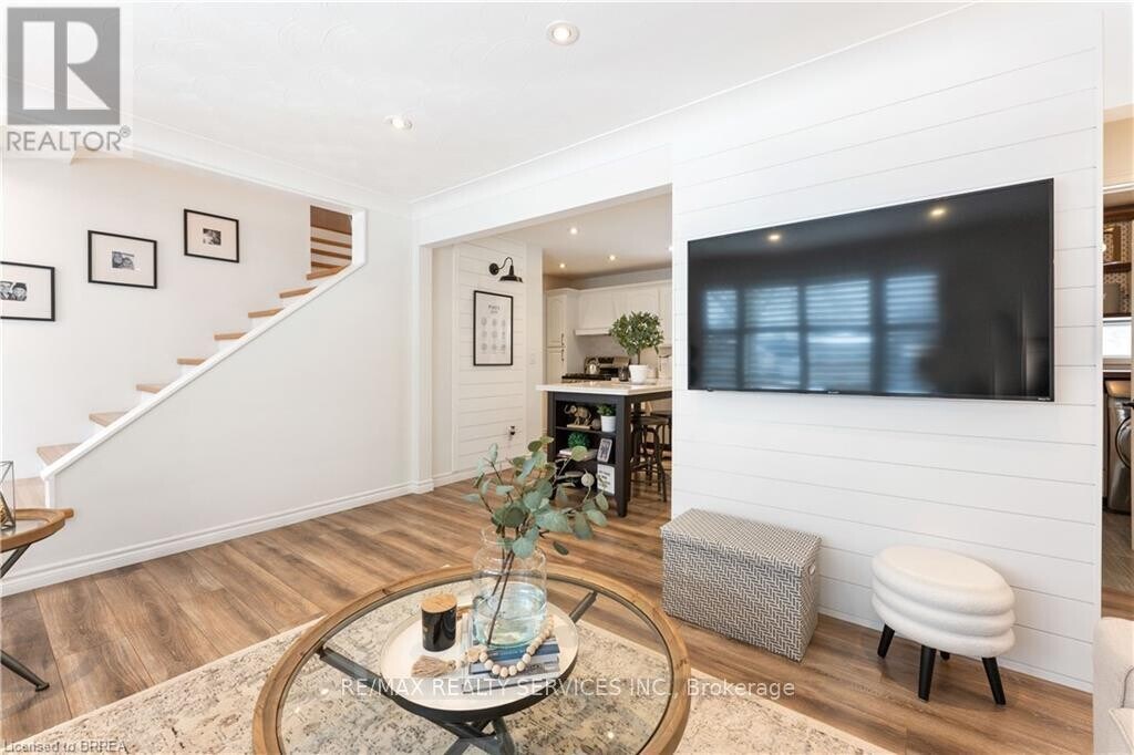 Beautifully renovated inside and out! This 3-bedroom,2-bathroom home sits on a quiet dead-end street in Brantford and offers modern living at its finest. Enjoy a bright living room with a stylish shiplap accent wall,California shutters,and pot lights throughout. The kitchen features quartz countertops,sleek cabinetry,and a matte black faucet-perfect for entertaining with an open flow to the living area. The main level includes two bedrooms,a spa-like bathroom with a floating vanity,standalone tub,and rainfall shower,plus a convenient laundry room. Upstairs,relax in your spacious second living area with a gas fireplace and walkout to a raised deck. The fully finished basement adds even more space,ideal for an in-law suite,complete with kitchen,living room,bedroom,and modern bath. Move-in ready and beautifully updated-this home truly has it all! (id:52069) ID#: 2055331
