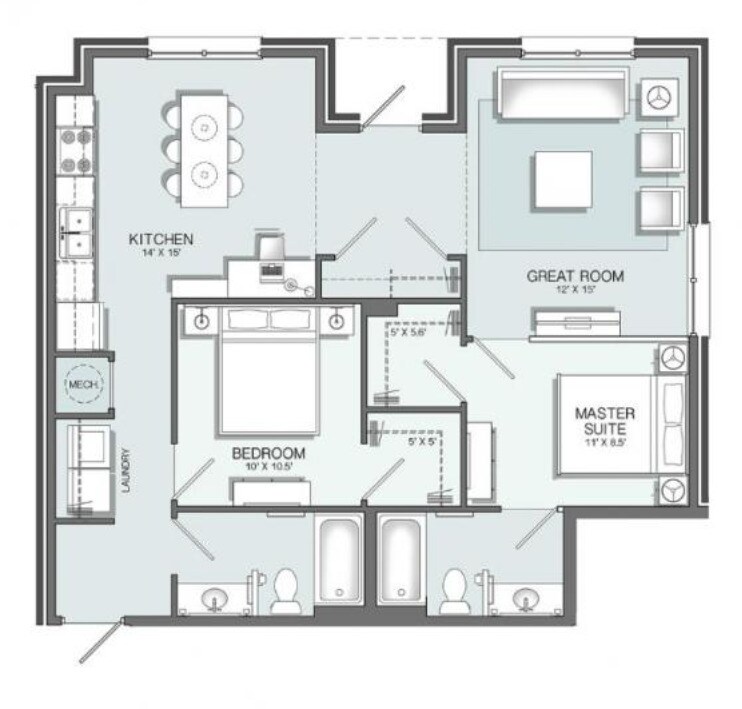 1 Bed, 1 Bath, 780 sq ftLargest 1 BedroomThis is the largest 1 Bedroom at this PropertyModel Gallery