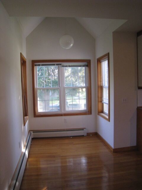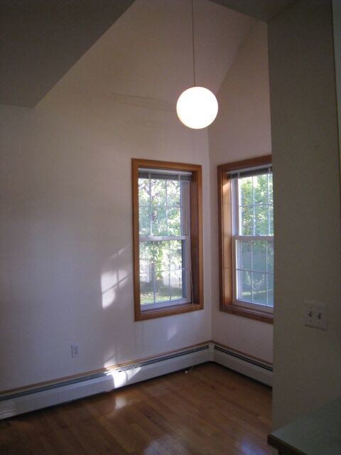 Contemporary apartment with hardwood floors and carpet in house with 5 units in residential area. Kitchen with stove, dishwasher, refrigerator. Spacious cabinets. Full bath. Coin laundry in building, storage space, parking.