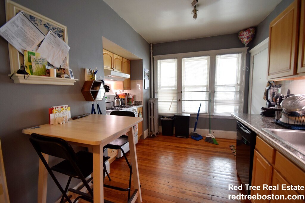 4-bed, 2-bath apartment in Allston near Boston University and Harvard Business School. Heat, hot water, and water included. Features a modern kitchen, tiled bathrooms, and hardwood floors throughout. Laundry in the building and outdoor parking available for rent. Close to MBTA lines and local shops.