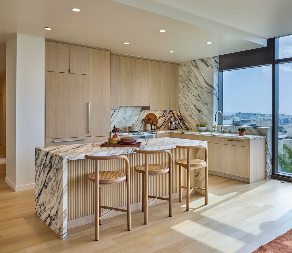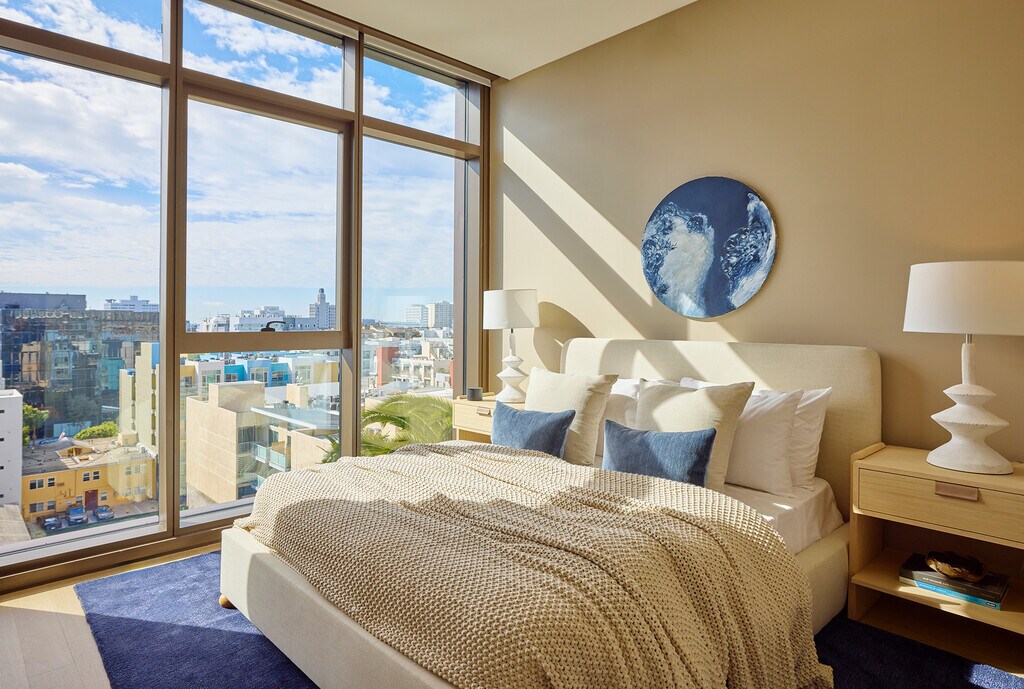 Inspired by the rhythm of the coastline, the exterior’s design features sculptural forms, soft curves, and tiered massing that evoke a sense of motion—an architectural expression of life lived ahead of the curve. Offering 67,000 square feet of indoor-outdoor amenities, 700 Broadway redefines how wellness is experienced in Santa Monica—whether it’s an invigorating workout at the onsite fitness pavilion, a refreshing dip in the rooftop pool or a quiet retreat in the landscaped private park.