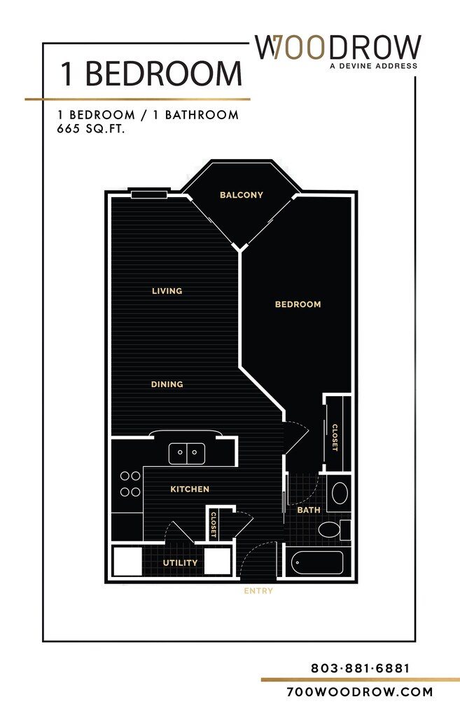 Apartment Model: 1 Bedroom-UpgradeFrom $1,6051 Bedroom, 1 Bath, 665 sq ftAvailable November 13, 2025![]() - 1 Bedroom-Upgrade - Floorplan 1 Apartment Unit: 1-707Apartment Model: 1 Bedroom-Upgrade$1,7251 Bedroom, 1 Bath, 665 sq ftAvailable November 13, 2025Apartment Unit: 1-604Apartment Model: 1 Bedroom-Upgrade$1,6901 Bedroom, 1 Bath, 665 sq ftAvailable January 6, 2026- 1 Bedroom1 Bed, 1 Bath, 665 sq ft- Model Gallery- Floorplans- Availability Details- Availability Date - Unit - Sq Ft - Call for Availability - 1 Bedroom - 665 sq ft - Model Amenities and Features- Features- High Speed Internet Access