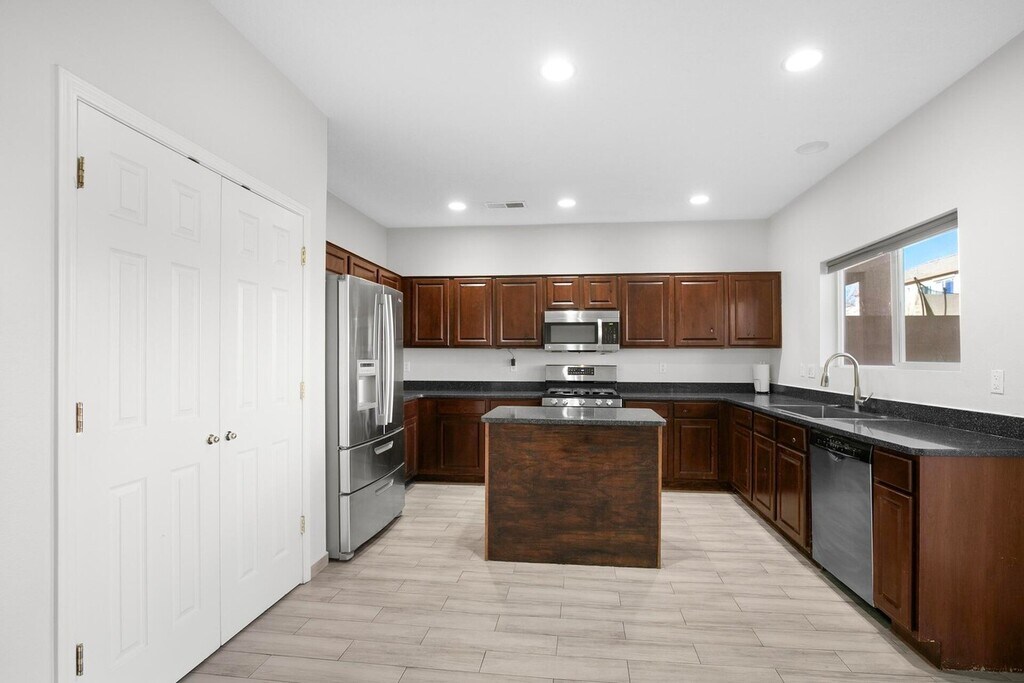 Please avoid scams. I will never ask you to wire money and will meet all prospective tenants in person at the property. This nearly 2,923 sq. ft. home blends comfort, style, and efficiency. The downstairs living area features beautiful tile flooring throughout, a welcoming gas fireplace, and a separate dining room perfect for gatherings. The kitchen is fully equipped with stainless steel appliances, a gas stove, and plenty of counter space. Upstairs, you’ll find four exceptionally large bedrooms with plush carpeting, three full bathrooms, and plenty of natural light. One additional bedroom and a ¾ bath are located on the main level, offering a flexible layout. Other highlights include a large laundry room with sink and brand new (2025) washer & dryer, a 3-car garage with ample storage, and solar panels that significantly reduce electric costs. Stay comfortable year-round with refrigerated air conditioning, and enjoy the private concrete-walled backyard. ? Key Features: • 5 spacious bedrooms / 3 full baths + 1 three-quarter bath • Tile floors throughout downstairs living areas • Carpeted bedrooms upstairs for comfort • Stainless steel appliances + gas stove • Gas fireplace in living area • Large laundry room w/ sink + new washer & dryer (2025) • 3-car garage • Solar panels for energy savings • Refrigerated air conditioning • Concrete-walled backyard Rental Criteria: Background: 700 credit score. No evictions in past 15 years No violent felonies in past 15 years No manufacturing/distribution of narcotic convictions in past 15 years. Income: 3x the monthly rent in verifiable income (paycheck stubs, bank statements, tax returns etc). Deposit $2,700 + first month rent: $2,700 Total move in: $5,400 Tenant to pay all utilities. Pet Policy: Up to 2 Dogs allowed (no Pitbulls due to insurance regulation, sorry) $0 pet rent, $500 pet fee per pet No cats