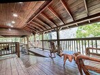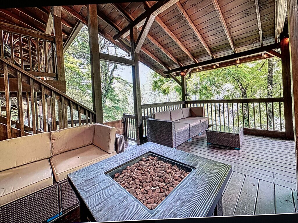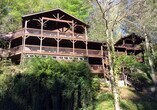 The cabin is located in Blue Ridge GA across from the Stanley Rapids of the Toccoa River with access via a stairway leading from the cabin down to the river where you can fish, kayak, tubing, swim and enjoy. It has 2 en-suite bedrooms with king size beds and balconies overlooking the river, 1 honeymoon with king size bed and balcony overlooking the river with private Jacuzzi for 2 people, kitchen, bathroom and 4 low-ceiling lofts each with queen size beds, 1 single bed and accessed by a short flight of stairs