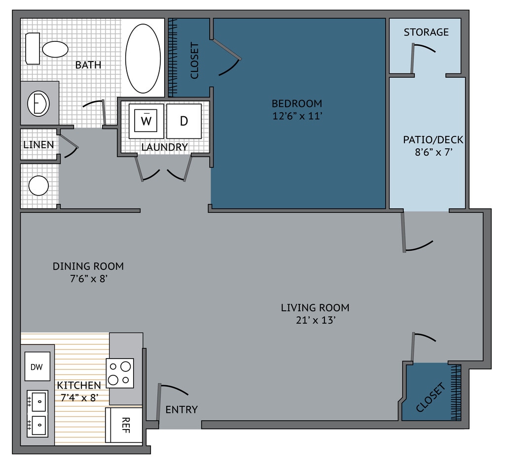 1 Bed, 1 Bath, 768 sq ftAvailable NowModel Gallery