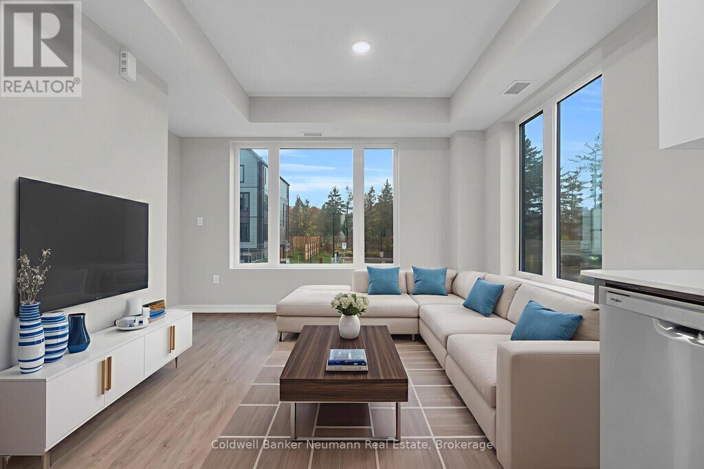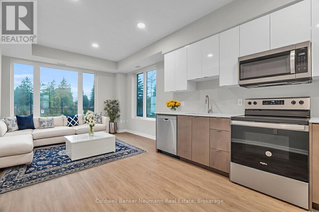 Available January 1st,2026,this spacious end-unit stacked townhouse offers over 900 sq. ft. of single-floor living in one of Guelph's newest communities,Marquis Modern Towns. Ideally located directly across from Riverside Park,the home blends timeless exteriors with modern,functional interiors designed to suit any lifestyle. Situated on the ground level,the unit features two bedrooms,two bathrooms,a bright and open living area,and a well-appointed kitchen. Finishes include maintenance-free vinyl plank flooring,Barzotti Eurochoice cabinetry in the kitchen and bathrooms,quartz countertops,a ceramic wall-tiled shower,a full-size stackable front-load washer/dryer,and a large private balcony off the primary bedroom to enjoy your morning Tim Hortons coffee (conveniently located just steps away). The kitchen also comes complete with a 4-piece stainless steel appliance package. One parking space is included with the rent,along with access to secure bike storage,a landscaped outdoor patio with BBQ,a children's natural play area,and plenty of visitor parking. With a bus stop just steps away providing direct routes to Guelph Central Station,this home offers both comfort and convenience in one of the city's best new communities. (id:52069) ID#: 2103450