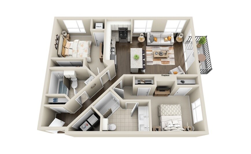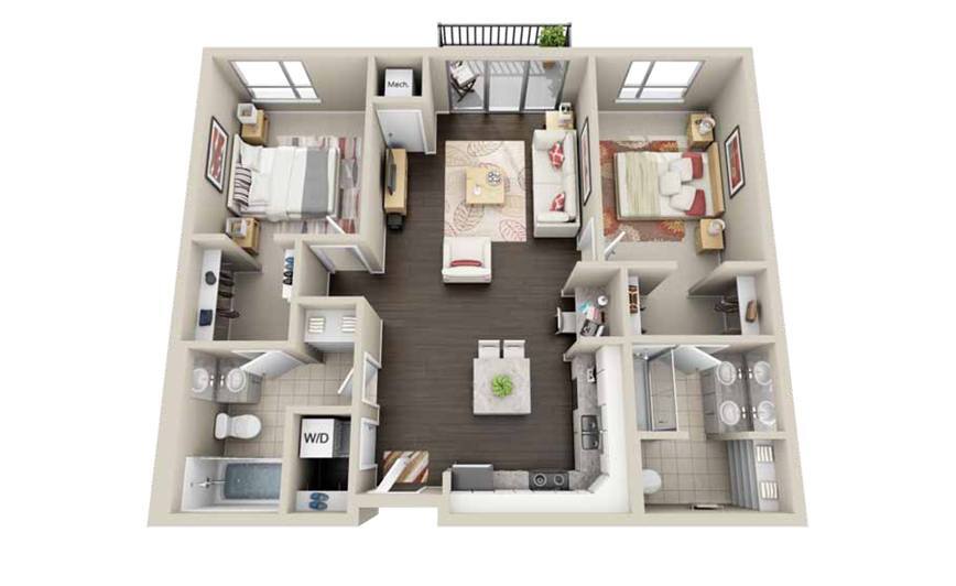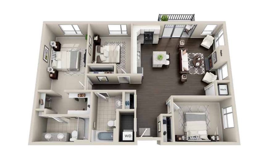 1 Bed, 1 Bath, 726 sq ftPlus FeesAvailable NowModel Gallery