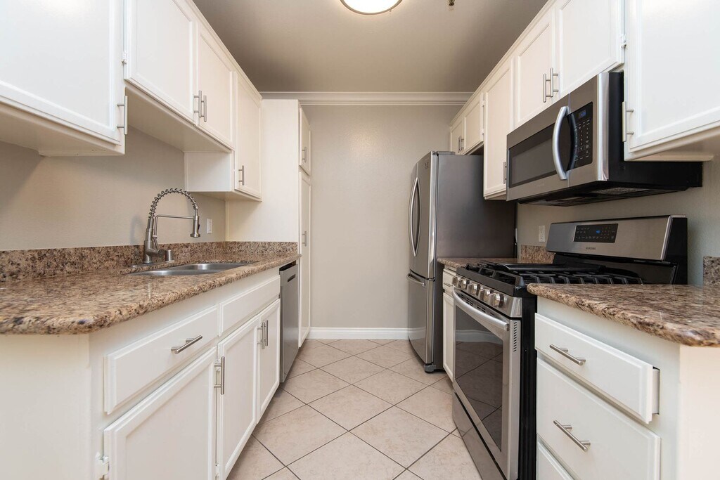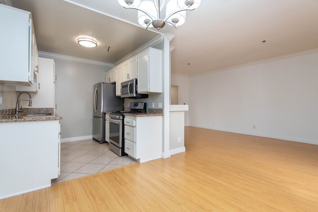 Stunning one-of-a-kind 1,245 sq. ft. 3 bedroom 3 bath apartment home that shines with laminate flooring and 15 ft vaulted ceilings in the living and dining room. There are beautiful stained glass windows that make this a true custom home. The spacious living room features a gorgeous gas fireplace with a stately mantle and a large decorative mirror for a touch of sophistication. Nicely sized dining room with custom built-in cabinetry and a balcony with a lovely sky view. The luxurious kitchen has premium stainless steel appliances, granite countertops, custom stained glass windows with a high ceiling. There is a full-size stackable washer/dryer in the hallway and an additional closet for storage space. The primary suite features a huge walk-in closet with two entry doors, built-in shelving, and hanging wardrobe bars. The attached bathroom has a striking stained glass window, custom bathroom tile, shower doors, and decorative mirror. The second bedroom is located next to the living room and is spacious with plenty of natural sun and double mirrored, sliding doors, and full attached bathroom. The third bedroom is nicely sized with double mirrored sliding doors and two stained glass windows. The full hallway bathroom has a granite countertop, shower doors, and a designer-framed mirror. This is a very special apartment perfect for roommates or a family. Modern luxury property located in a quiet tree-lined Westchester residential neighborhood. This desirable area is a niche neighborhood within the larger city of Los Angeles. The building has beautiful stained-glass windows in the common areas that add a touch of sophistication. There is an intercom entry into a landscaped courtyard with assigned gated parking included. Professionally managed and online rent payments available. Prime Westchester area is a suburban oasis. The gently curving streets, tidy homes, and well-manicured lawns of Westchester create a small-town feel and only a short distance to LAX. Close proximity to tech hubs in Venice, Playa Vista, Culver City, and El Segundo makes Westchester an appealing place to call home. Located near Westfield Fox Hills Mall, Howard Hughes Center, and Culver City. Conveniently located near LMU, UCLA, USC & SMC and easy access to 405, 105 & 90 Freeways. **TERMS:** $4,350 12 MONTH LEASE $4,350 SECURITY DEPOSIT *$1200 OFF FIRST MONTH'S RENT*