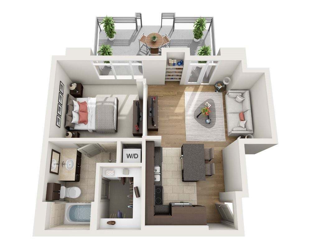 A1D - Floorplan 1 Apartment Unit: 2508Apartment Model: A1D$3,5421 Bedroom, 1 Bath, 792 sq ftAvailable NowFloorplan A1K