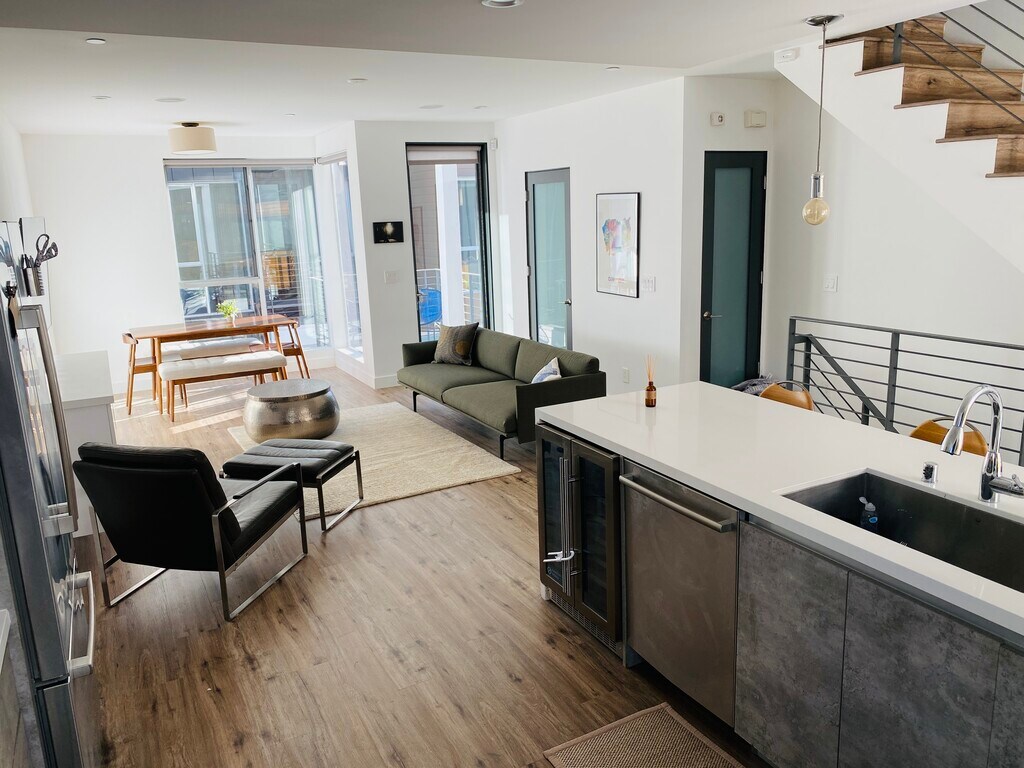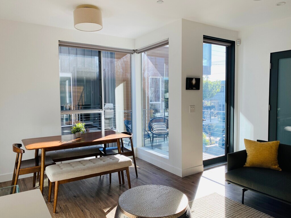Beautiful modern smart home in walking distance to anything you need (Melrose and La Brea)! High-end like-new construction with ample space for professionals, couples and/or families. Also, perfectly suited for a work-from-home lifestyle. Desirable and safe neighborhood with many working professionals. Spacious open living with high ceilings and large windows, providing an abundance of natural light. High-end finishes and appliances with LOTS of extras! Garage (with EV charging station) leads to the 3-story residence with an office. Lower level has a convertible office or guest suite. Upper features the primary and secondary bedrooms with ensuite bathrooms. House comes pre-wired with high-speed internet throughout, 55'' Smart TV with 5.1 Surround Sound and full-motion mount to watch at any angle, listen to music wirelessly throughout the house, ipad pro, full kitchen with all cookware and appliances, wine cooler, great quality mattresses, blackout shades and much more! **** INCLUDED: Unfurnished price $5,750 and full furnished as seen in the pictures is $6,250. Washer and dryer conveniently located on 3rd floor between Main and 2nd rooms. Kitchen with all high-end appliances, dishware, and utensils. Also, wine cooler, electric kettle, instant pot/rice maker and much more. Drinking water filter iPad to watch your favorite shows from one of the bedrooms, work/read from the patio or play music for the surround sound speakers. High-Speed Internet (with internet extenders throughout the house). Trash and Recycling. 5.1 Surround Sound with 55'' Flat Screen TV. Nest Doorbell and camera feed of both doorbell and outside garage view with the house iPad. Play music from your phone, computer or tablet wirelessly with the Living room receiver and 5 in-wall speakers. 2 Portable standing desk stands. Garage connects directly to the house and comes with an EV Charger (Tesla Wall Connector that works with many types of EV vehicles) and fits a regular size car/SUV and a small compact car. Also, 2 additional guest spots for regular size cars shared with the other units that are first come first serve but often available. Additionally, street parking with permit. Wireless Printer/Scanner Ensuite Bathrooms for all bedrooms Blackout shades for all bedrooms Great quality Mattresses and pillows Air Mattress (Queen Size) Lots of extra comfortable blankets (including a weighted blanket) **Dogs and Cats allowed with approval and non-refundable pet deposit NOT ALLOWED: *Smoking