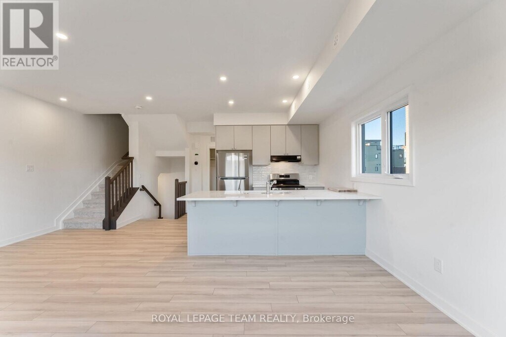 Welcome to 720 Mishi Pvt! Be the first to rent this BRAND NEW END UNIT featuring 2 bedrooms,1.5 bathrooms in the highly sought-after Wateridge Village community,just minutes from the Ottawa River and downtown. Surrounded by scenic parks,walking trails,and family-friendly amenities,this vibrant neighbourhood has it all. The Haydon End model offers an open-concept layout with an abundance of natural light. The main floor features stylish laminate flooring,a convenient powder room,and a modern kitchen with sleek cabinetry,quartz counters,tiled backsplash,and a breakfast bar overlooking the spacious living/dining area. On the 2nd level,you'll find two generous bedrooms with ample closet space and a full bathroom finished with quartz counters and an undermount sink. A large balcony overlooking the park will also greet you perfect for parties,BBQ's,or outdoor gatherings. Outdoor parking included. Available immediately! (id:52069) ID#: 2032633
