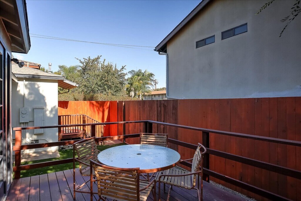 Three-bedroom house on Mission Street in walkable central Santa Barbara, three blocks from onramps to the 101 freeway. For rent with a one-year renewable lease. The house has one bathroom with a tile shower, a mudroom/laundry room with a washer and dryer, a living room, and a dining area that connects to the kitchen via a large butcher-block counter/table/bar. One-bedroom has a large walk-in closet and glass French doors which open onto a wooden deck in the backyard. The backyard has a high fence for privacy, a concrete slab where a barbecue could be placed, and an area with new artificial turf. No pets or indoor smoking. No offstreet parking, but street parking is free. Utilities are $140 extra per month (not including electricity, which is paid by the tenant). Monthly gardening fee of $100 (waived if tenants agree to manage lawn and greenery). No pets. The house was recently remodeled: new quartz countertops; new large single-basin kitchen sink; new butcher-block; upgraded kitchen cabinetry; new tile floors in the kitchen, dining area, bathroom, and mudroom/laundry room; new bathroom vanity and sink; newly built bathroom cabinetry; new washer and dryer; an overhaul of the plumbing; new custom-built shelving; new window coverings; a newly sanded and stained backyard wooden deck; and a newly painted exterior and interior.
