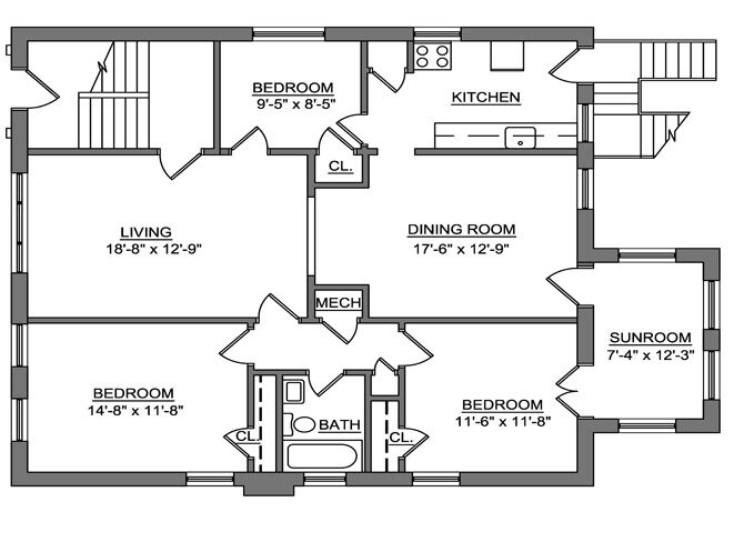 3 Beds, 1 bath - Floorplan 1