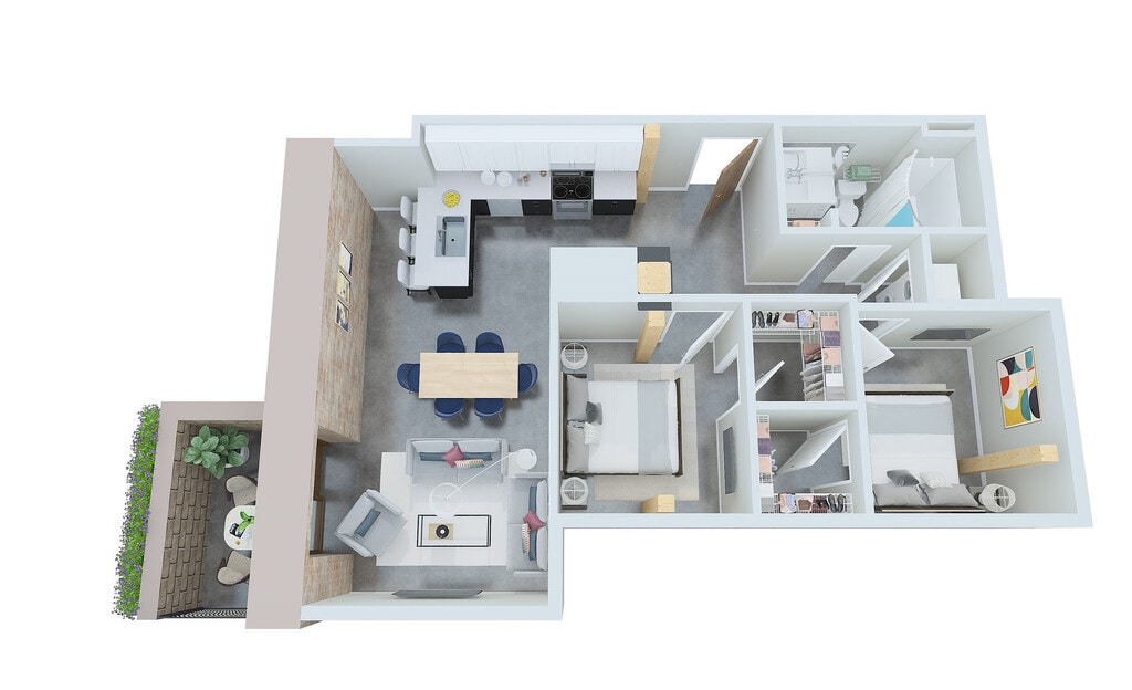 2 Beds, 1 Bath, 761 sq ftModel Gallery