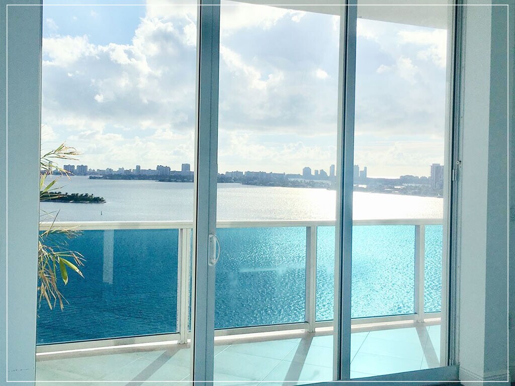 Modern waterfront Condo in Edgewater The Residence: Modern condo with unobstructed and direct panoramic water views of Biscayne Bay and Miami Beach skyline from an oversize 200 sqft balcony. Enjoy an open floor design with 2 bedrooms (1 full and 1 converted den), and 1 full bath. Featuring marble floors throughout the unit and balcony, open kitchen with granite tops, stainless steel appliances, 10-foot floor to ceiling impact glass windows, and washer & dryer. Comes with 1 assigned covered parking (extra parking and storage room may be available for rent). Location: Conveniently located in the heart of Edgewater, walking distance everywhere including tennis courts, basketball court, and volleyball court at Margaret Pace Park. Publix Market is minutes away, Midtown, Design District, Wynwood, Brickell and Downtown Miami. Just a short drive to the Beaches and 10 minutes to MIA airport. The building: New Wave Condo is a well-maintained modern exclusive boutique building with only 75 units. Building offers a number of great amenities, including a waterfront lap pool, a fitness center with water views, a meditation garden, covered parking and concierge front desk with 24-hour security.