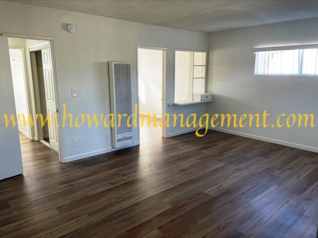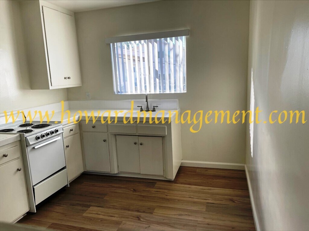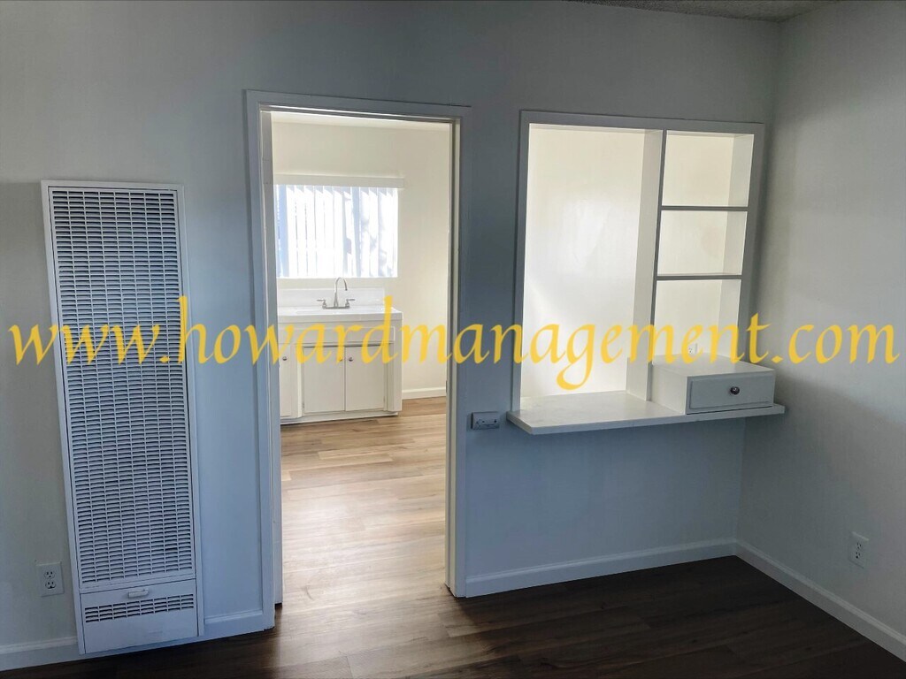 Extra large top floor studio/single apartment with luxury vinyl plank floors throughout (no carpets. Unit has been fully refurbished with fresh paint, new blinds, new light fixtures and hardware, new closet doors, new medicine cabinet. The large eat-in kitchen has an electric range (stove/oven). Full bathroom with window and newly re-glazed bathtub. Apartment offers air conditioning, nice views and plenty of natural light. Will consider a small pet with additional deposit. Unit comes with one parking space. Gated building with pool and laundry facilities. Great location, near everything. Water, trash and sewer are paid for. Please note: This is a non smoking building. ****************************************************************************** Howard Management Group does not guarantee the accuracy of the information concerning the conditions or features of the property. Renter is advised to independently verify the accuracy of all information through personal inspection. BRE ID NUMBER: 01521497