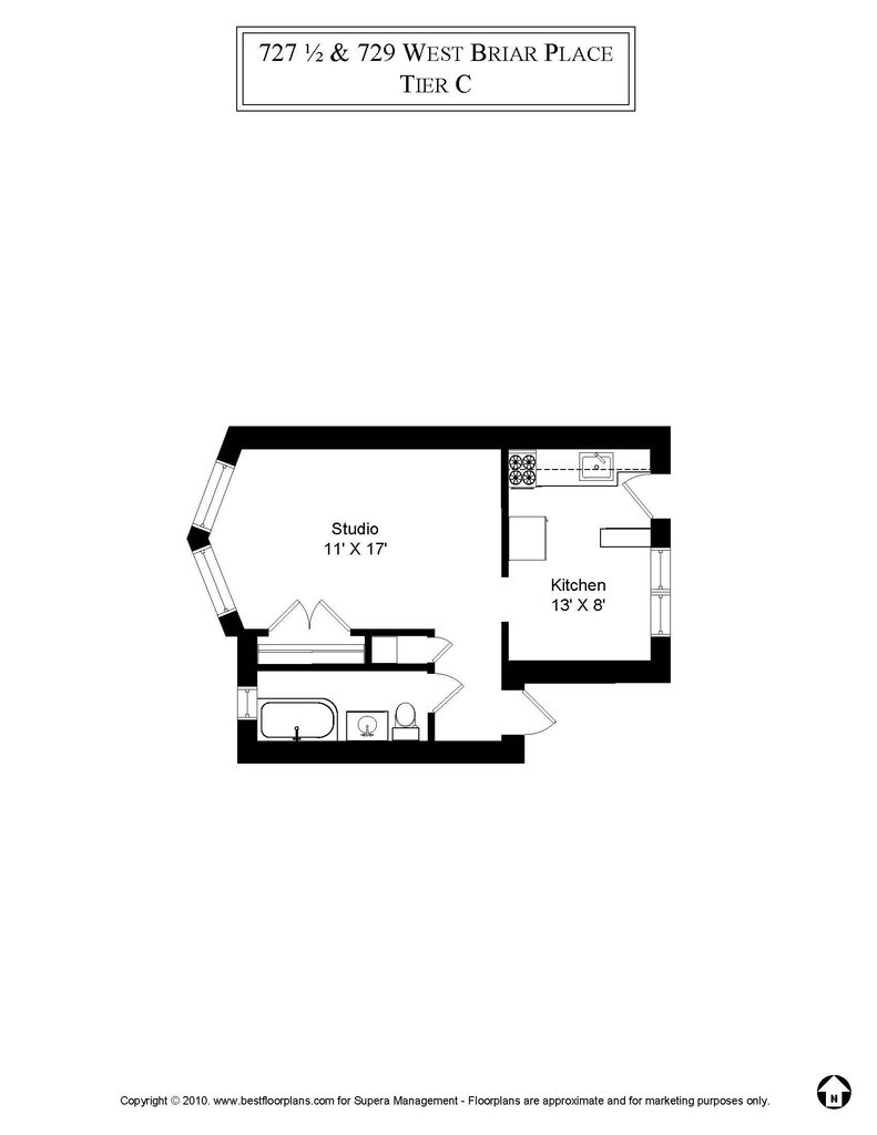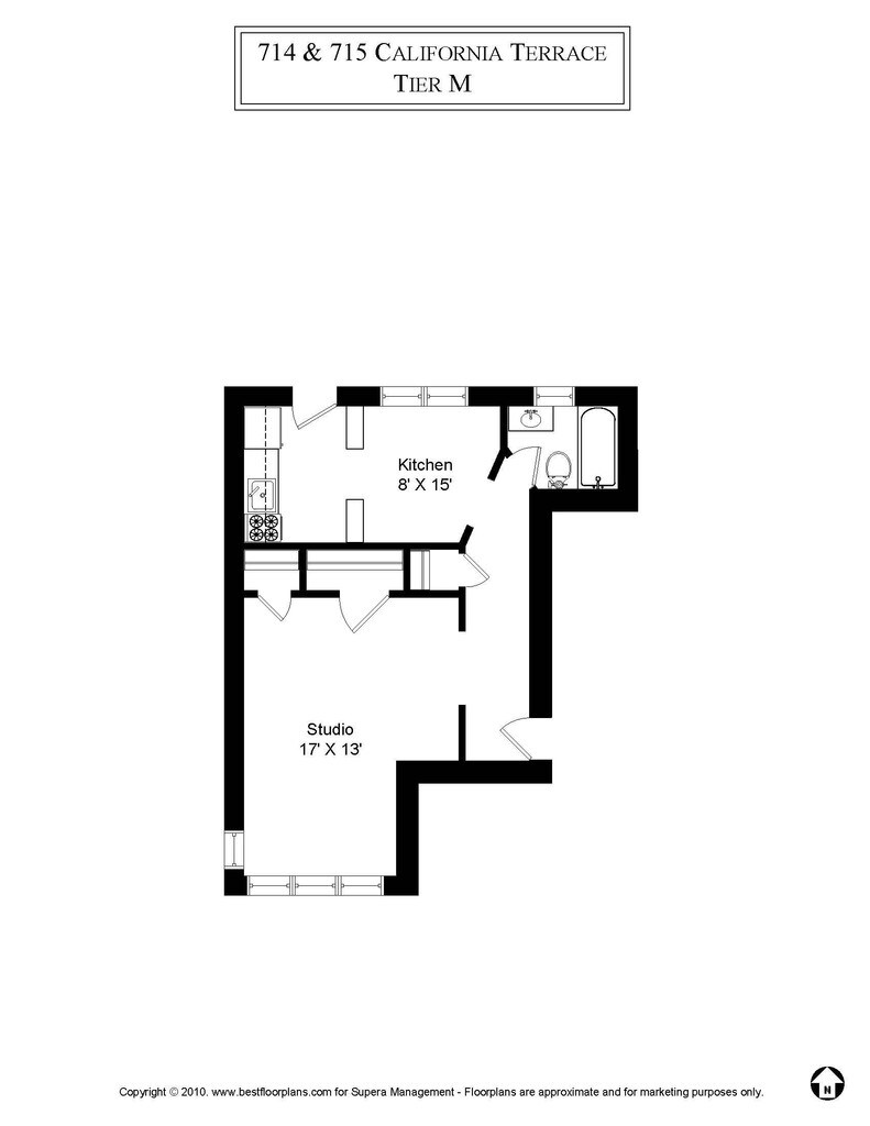 Studio, 456 sq. ft. - Floorplan 1 Tier E