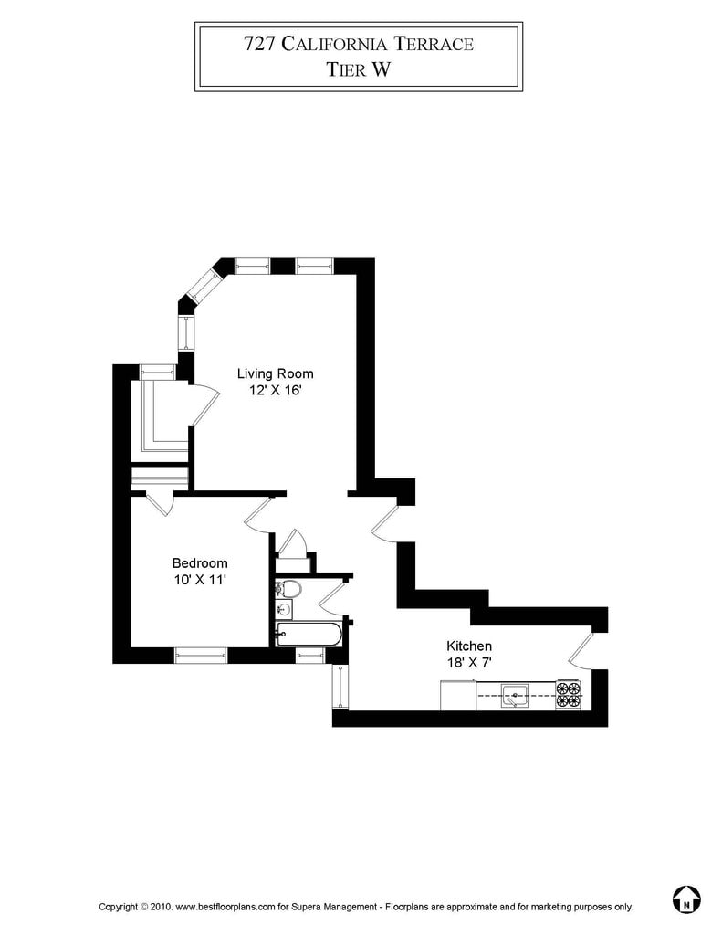 Studio, 667 sq. ft. - Floorplan 1 1 Bedroom