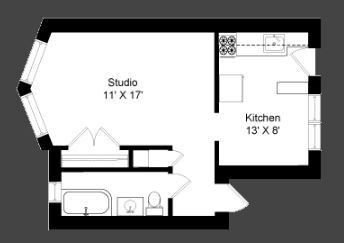 Studio, 317 sq. ft. - Floorplan 1 Studio, 378 sq. ft.