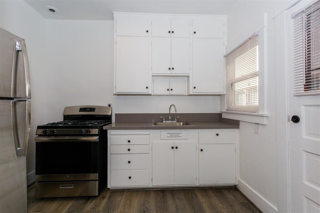 Large Remodeled Studios and One Bedroom Apartments. Features an Open Layout, Great Natural Light, Kitchen with Granite Counter Tops and Appliances, Built-in Shelving, Walk-In Closet, and a Space for a Home Office Area or Extra Closet. On-Site Laundry. Quaint Bungalow-Courtyard Community. Pet Friendly!